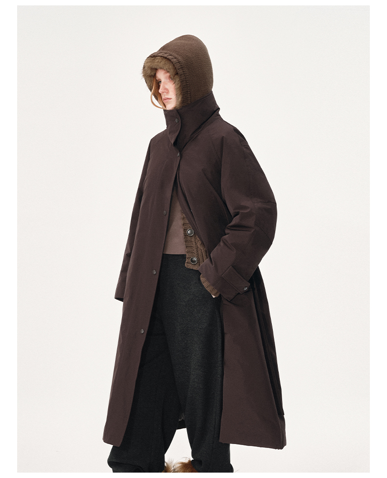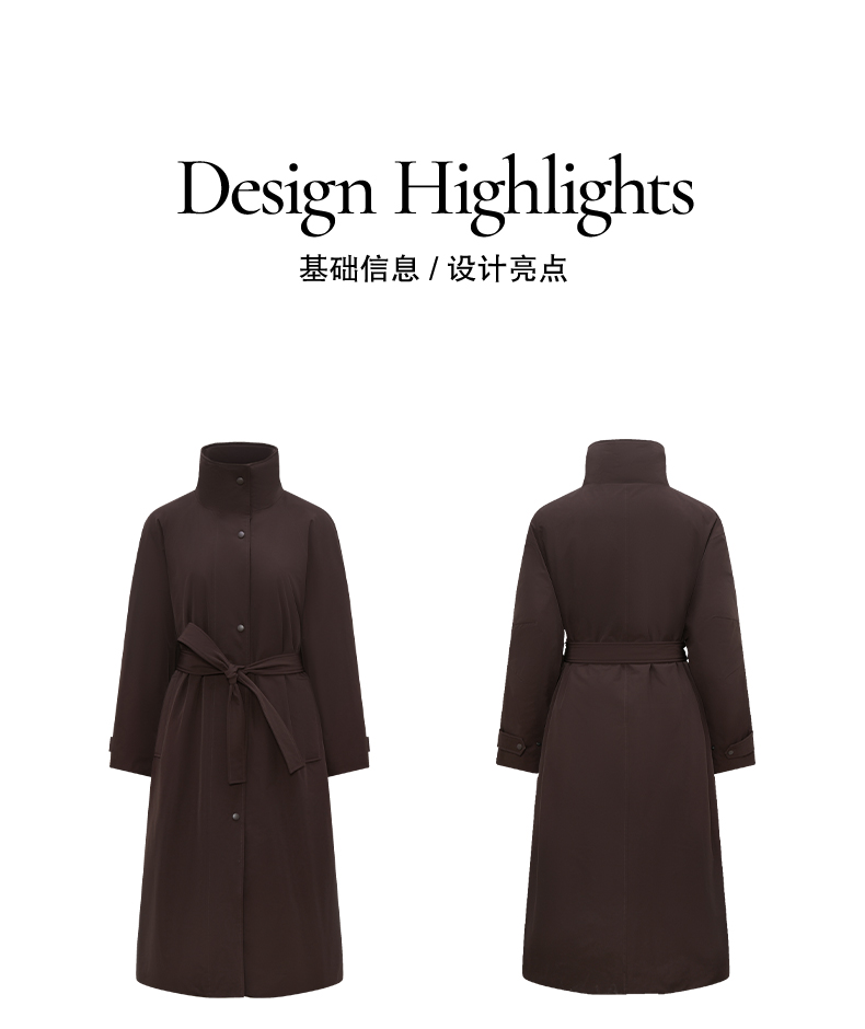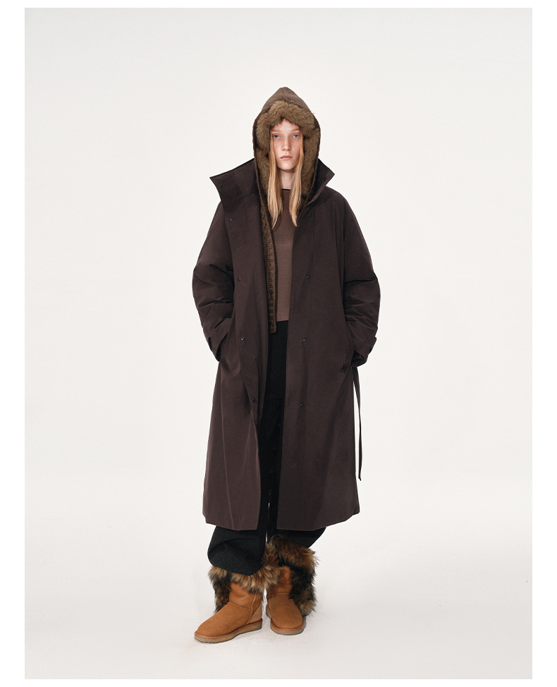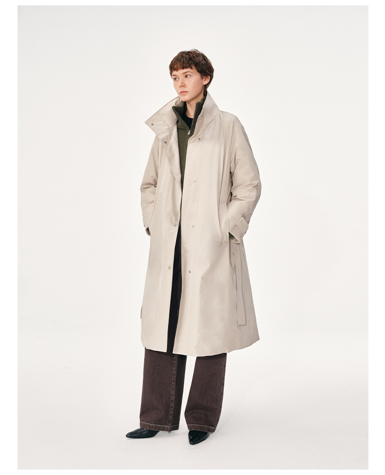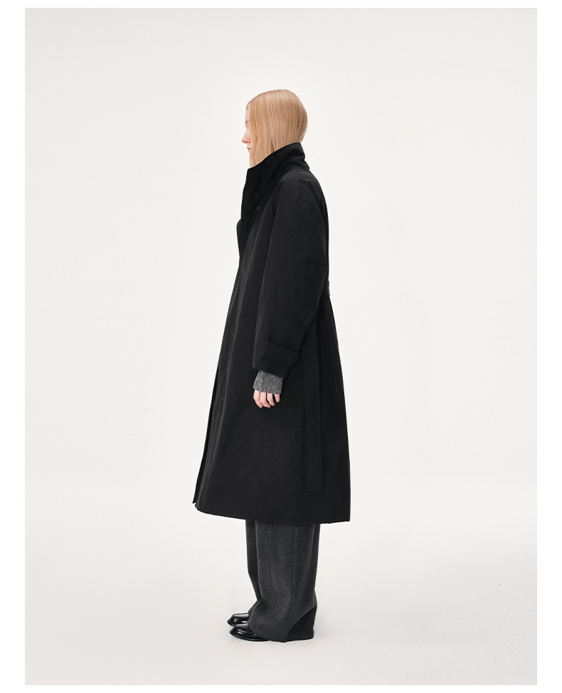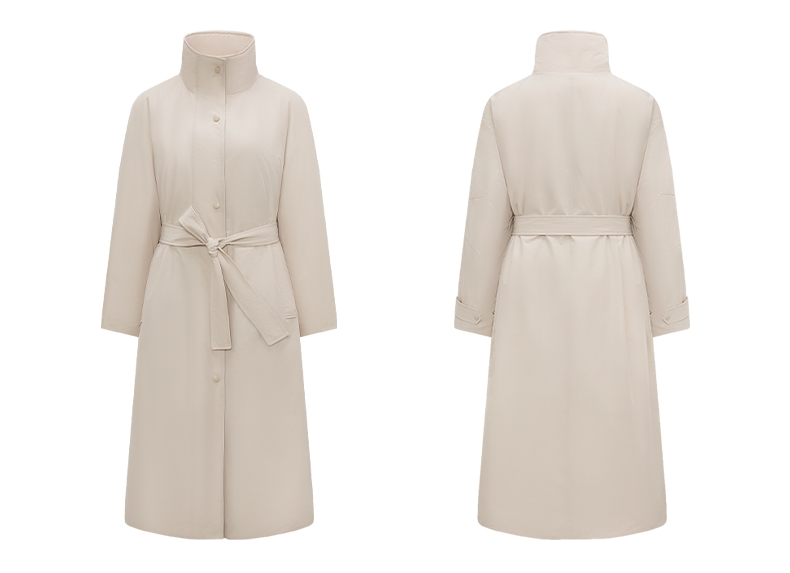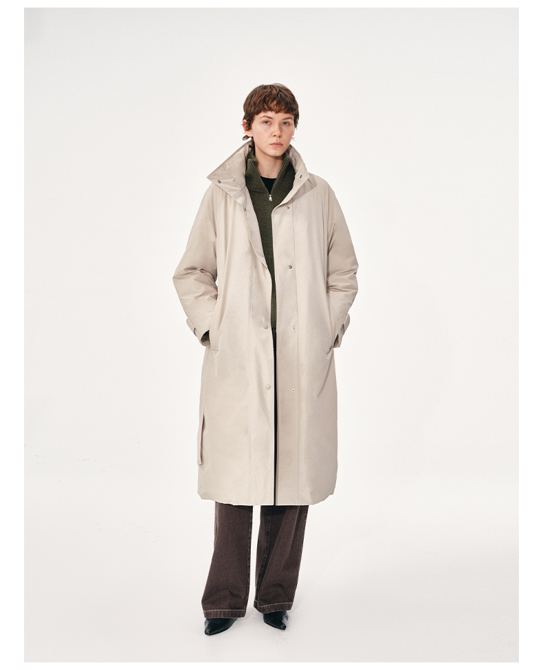 NUTH立领宽松收腰系带长款羽绒服女 90白鹅绒(发货时间同步天猫)