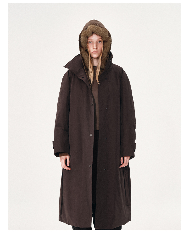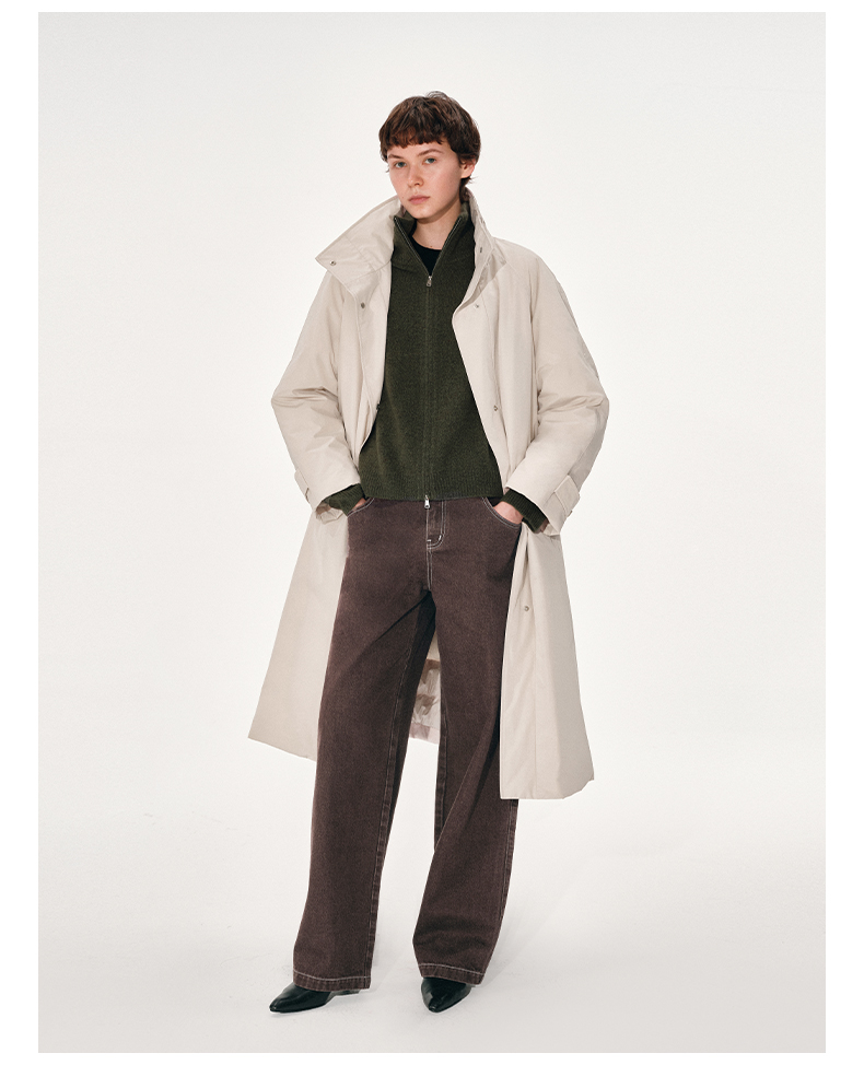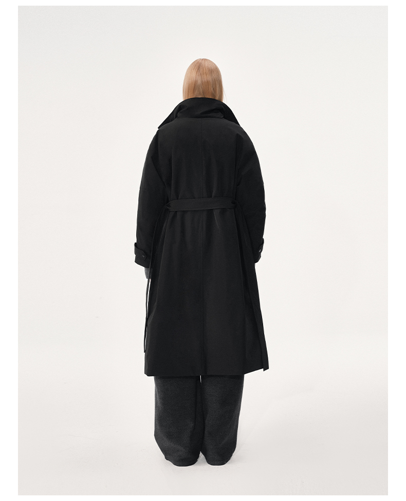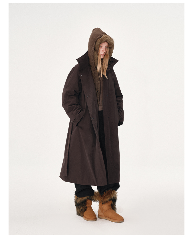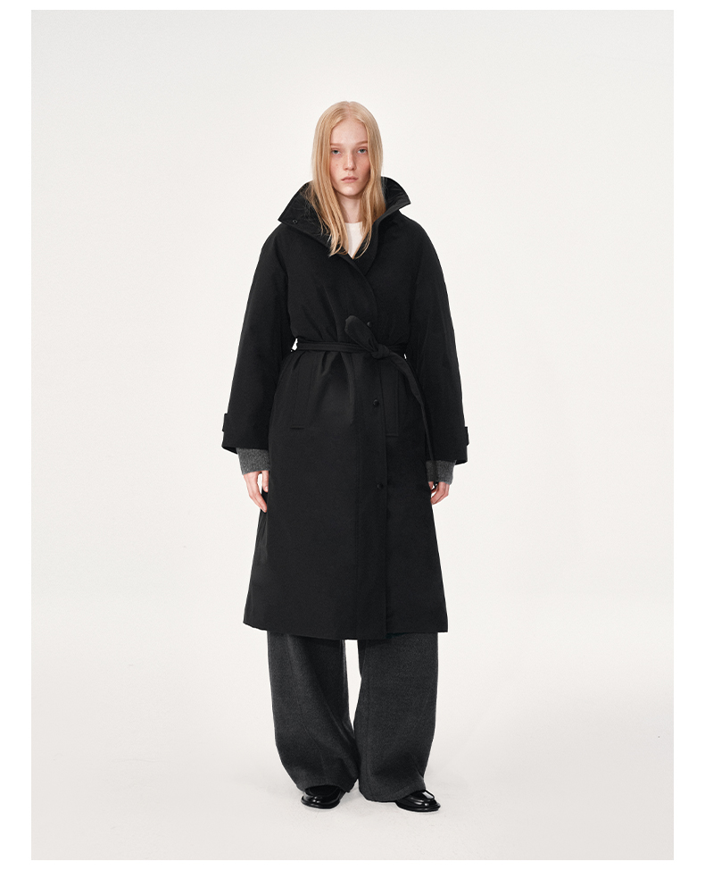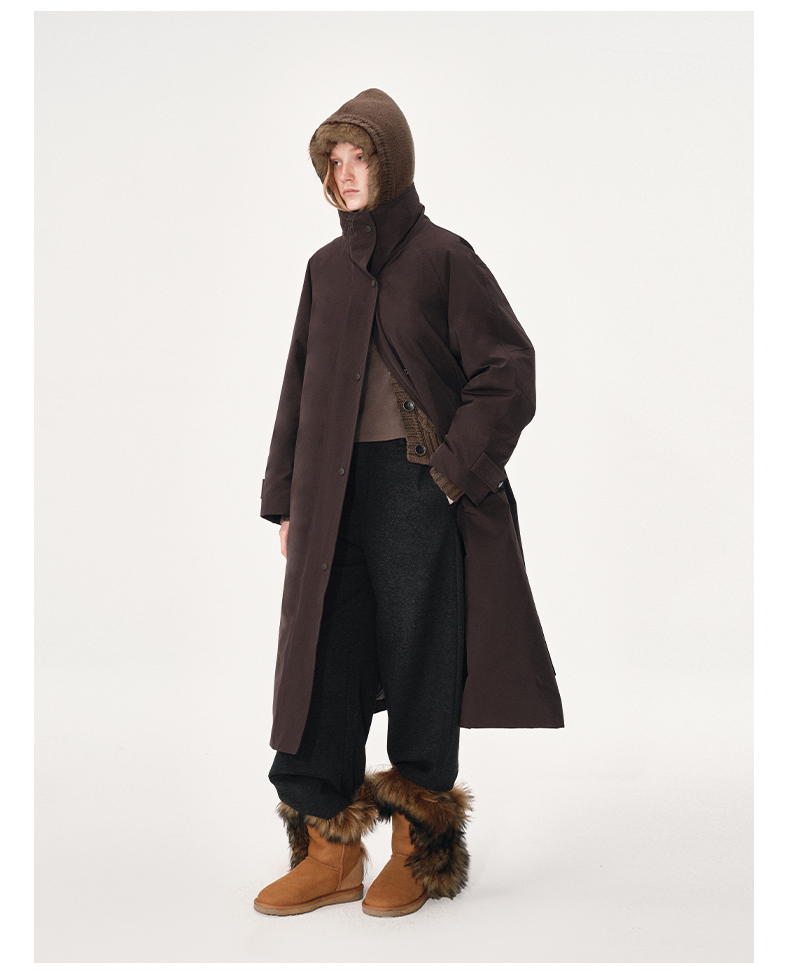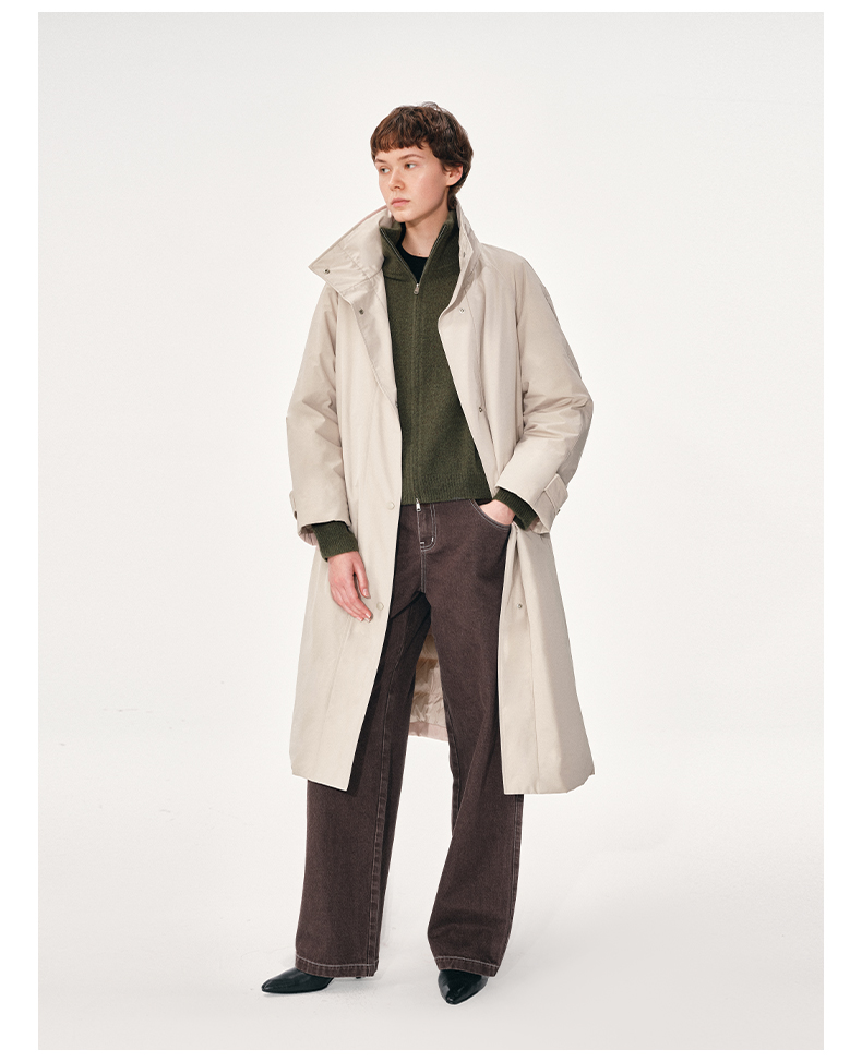 NUTH立领宽松收腰系带长款羽绒服女 90白鹅绒(发货时间同步天猫)