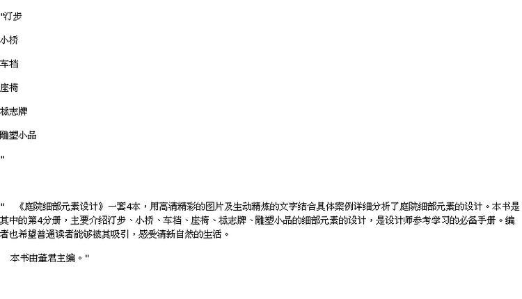 庭院细部元素设计4汀步小桥车档座椅标志牌雕塑小品8503中国林业出版社官方自营店正版畅销书