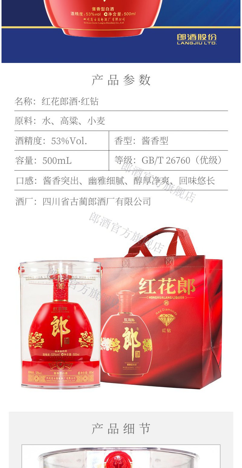 郎酒 红花郎 红钻 53度酱香型白酒500ml