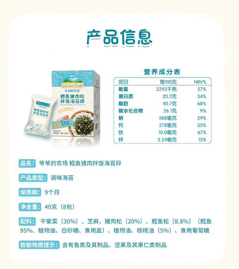 爷爷的农场鳕鱼猪肉松拌饭海苔碎40g
