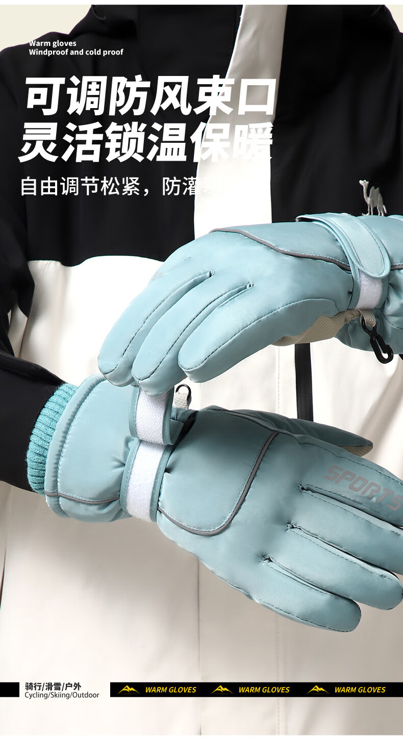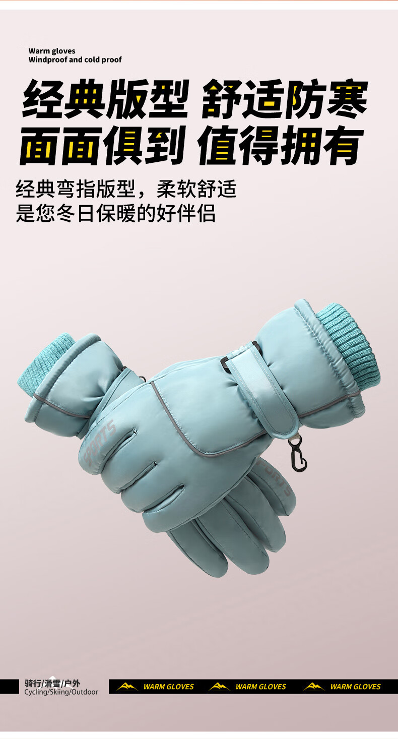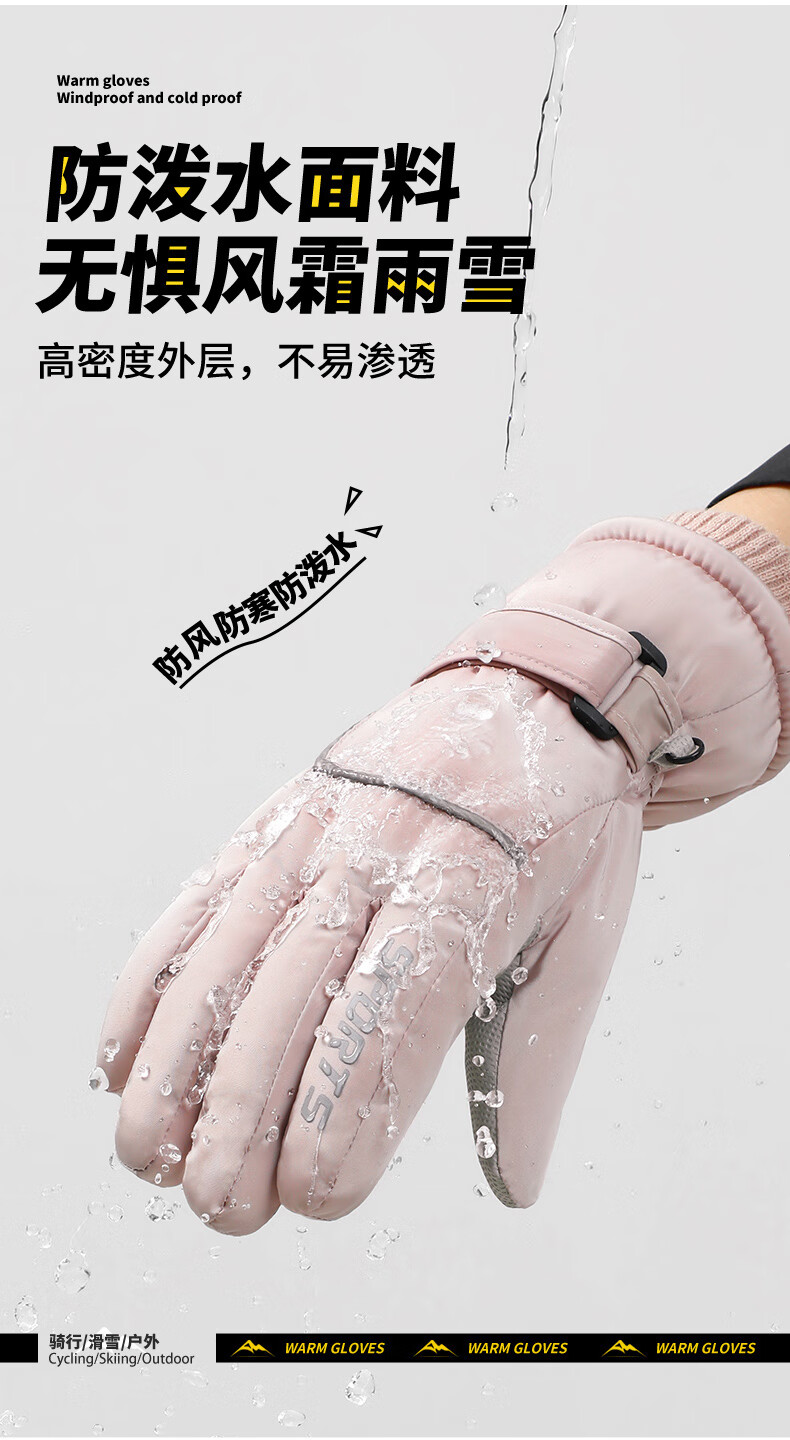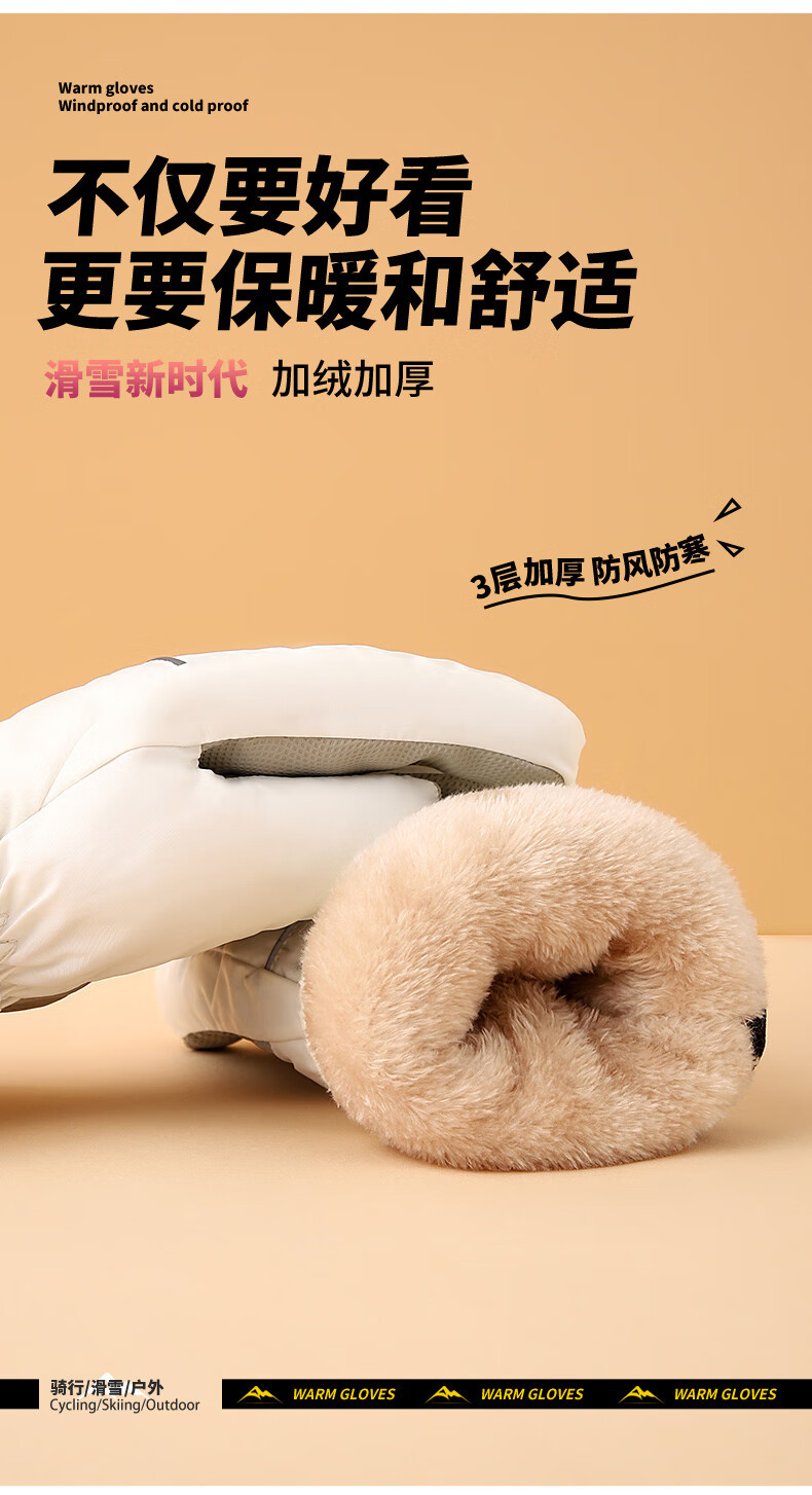 积分免费兑:南极人新款骑行保暖手套冬季加绒加厚玩雪不湿手护手腕防滑可触屏情侣款 白色【碗口不钻风】
