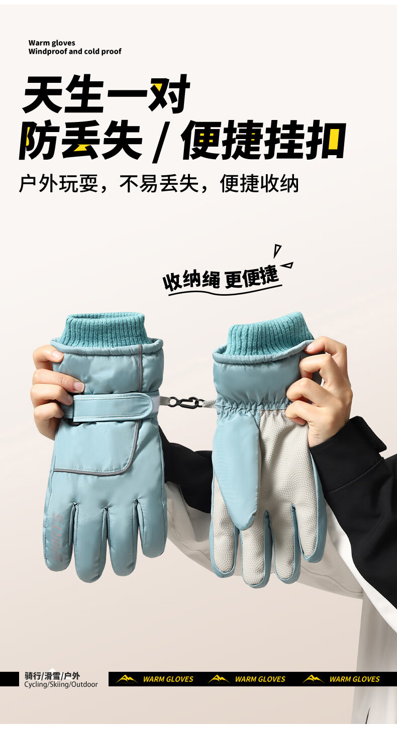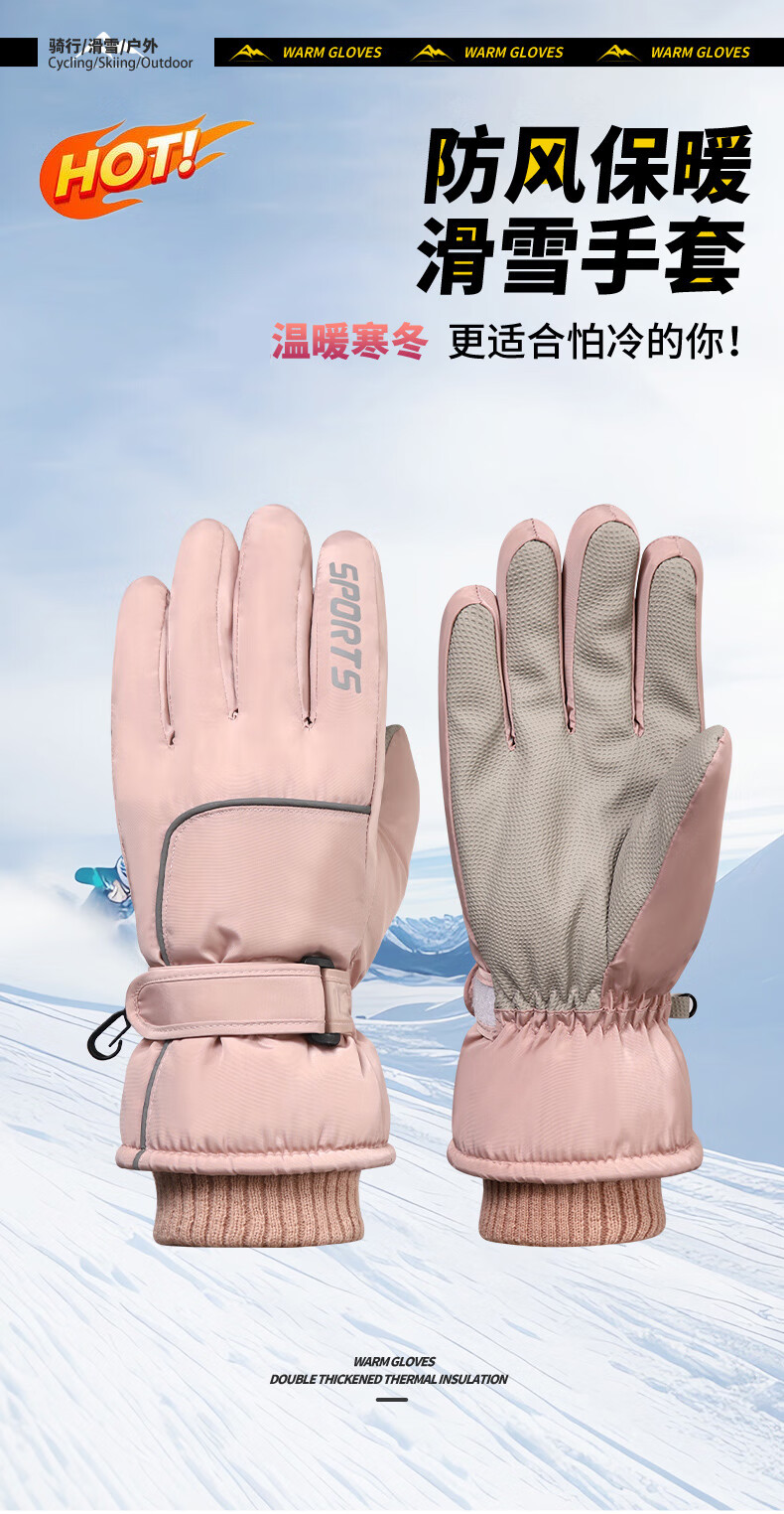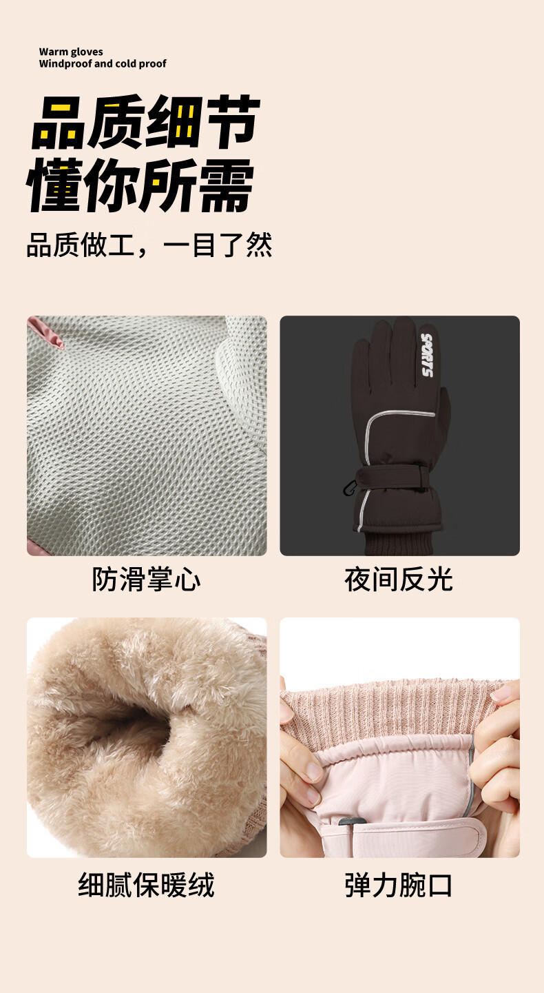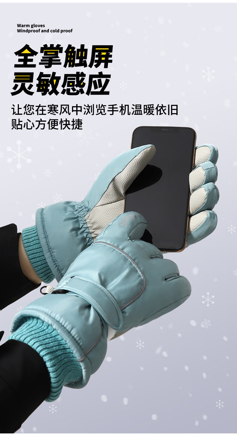 积分免费兑:南极人新款骑行保暖手套冬季加绒加厚玩雪不湿手护手腕防滑可触屏情侣款 白色【碗口不钻风】