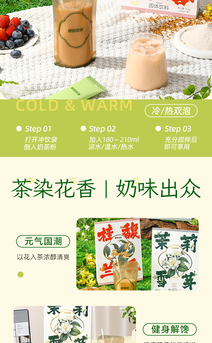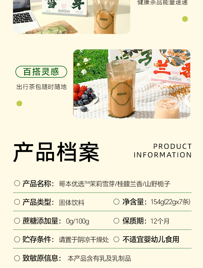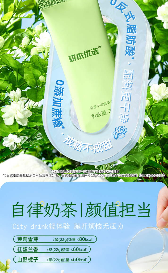 【到手3袋】哥本健康“自律型”奶茶 茉莉雪芽/桂馥兰香/山野栀子 7条*3袋 新西兰进口奶源 茶香清新 奶香醇厚 0白砂糖额外添加 0植脂末额外添加