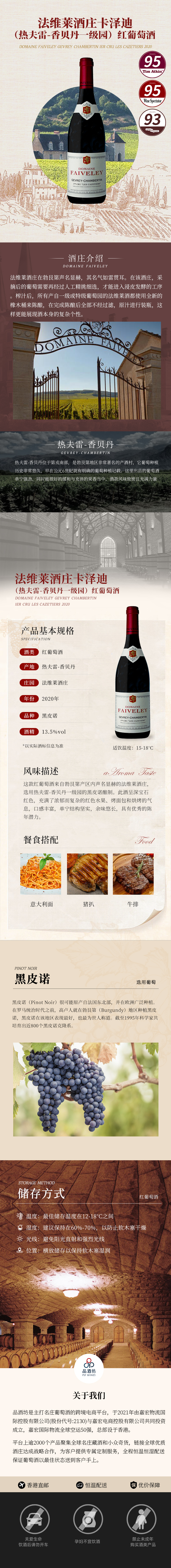 【1.5升】2020 Domaine Faiveley Gevrey Chambertin 1er Cru Les Cazetiers 法维莱酒庄卡泽迪(热夫雷-香贝丹一级园)红葡萄酒