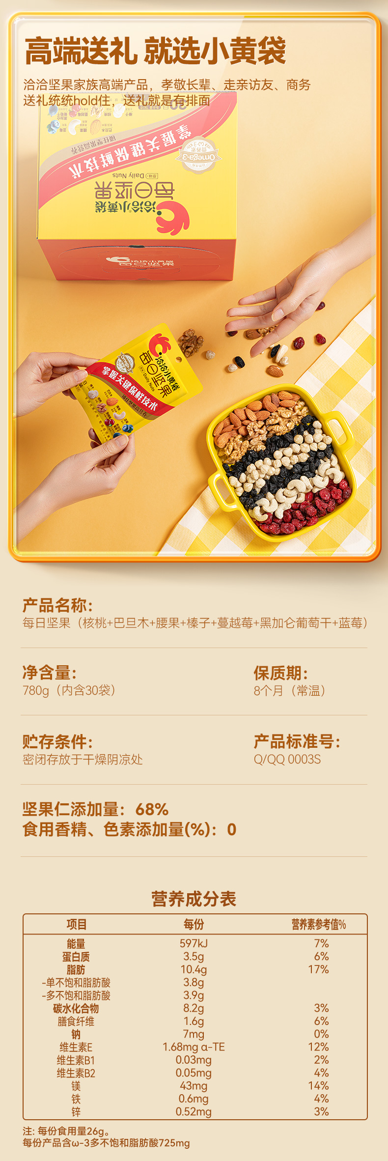 【原色原香】洽洽小黄袋每日坚果 恰恰 干果坚果 中秋礼盒 品质甄选 营养均衡