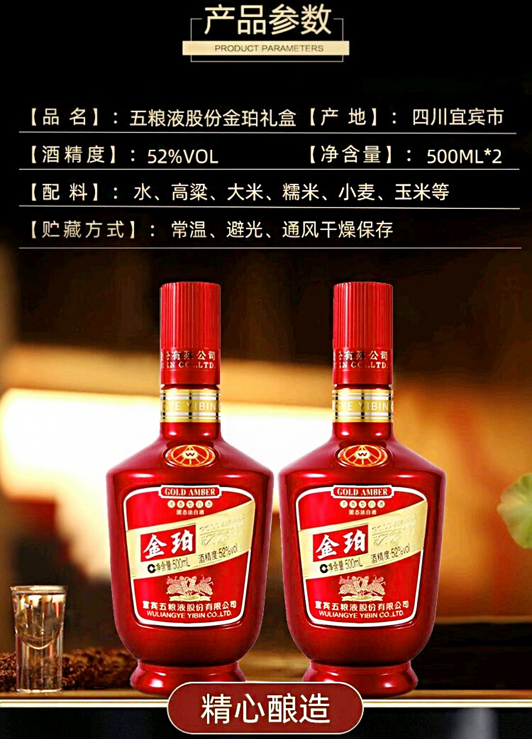 优选丨五粮液股份 金珀礼盒 浓香型白酒52度商务宴请 送礼佳选 白酒