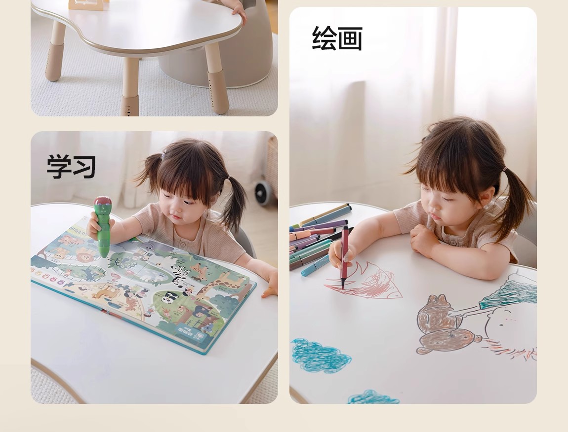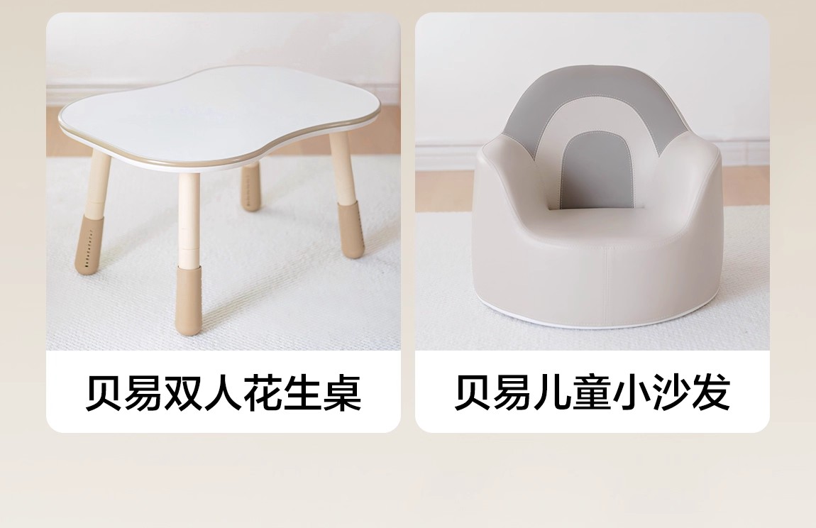贝易双人花生桌儿童宝宝游戏幼儿园可调节儿童阅读学习桌椅套装【会员下单送:小汽车或者满708送:伙伴龙故事机】