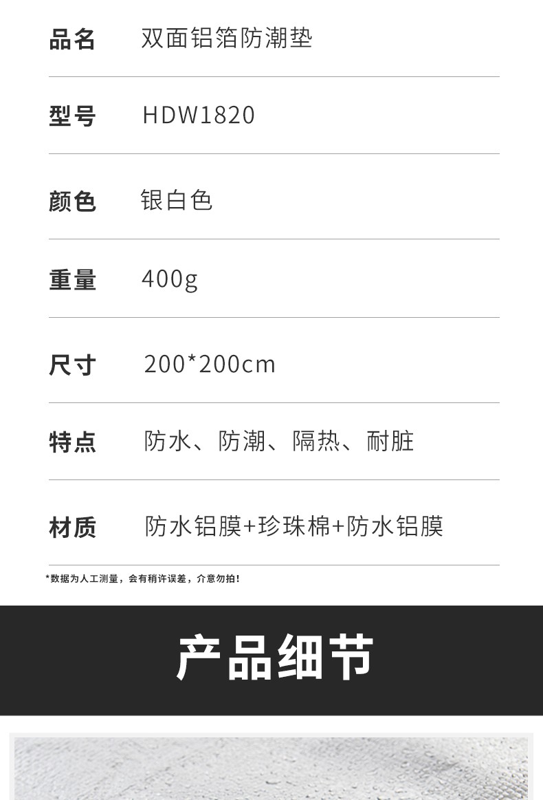 何大屋Hodtown 户外防潮垫 铝箔野餐垫 200*200 HDW1820