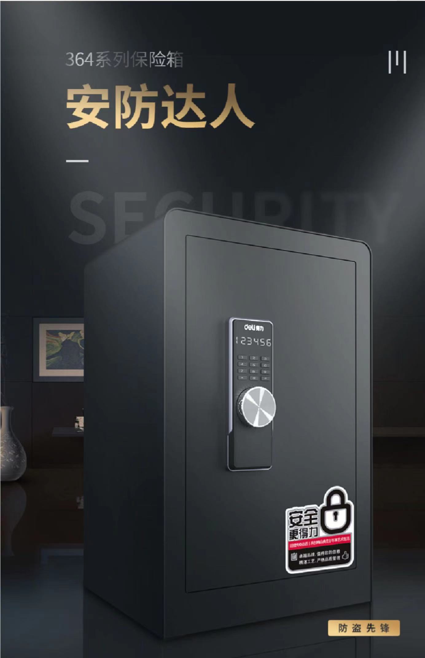 得力3644s电子密码保管箱H600(黑色)