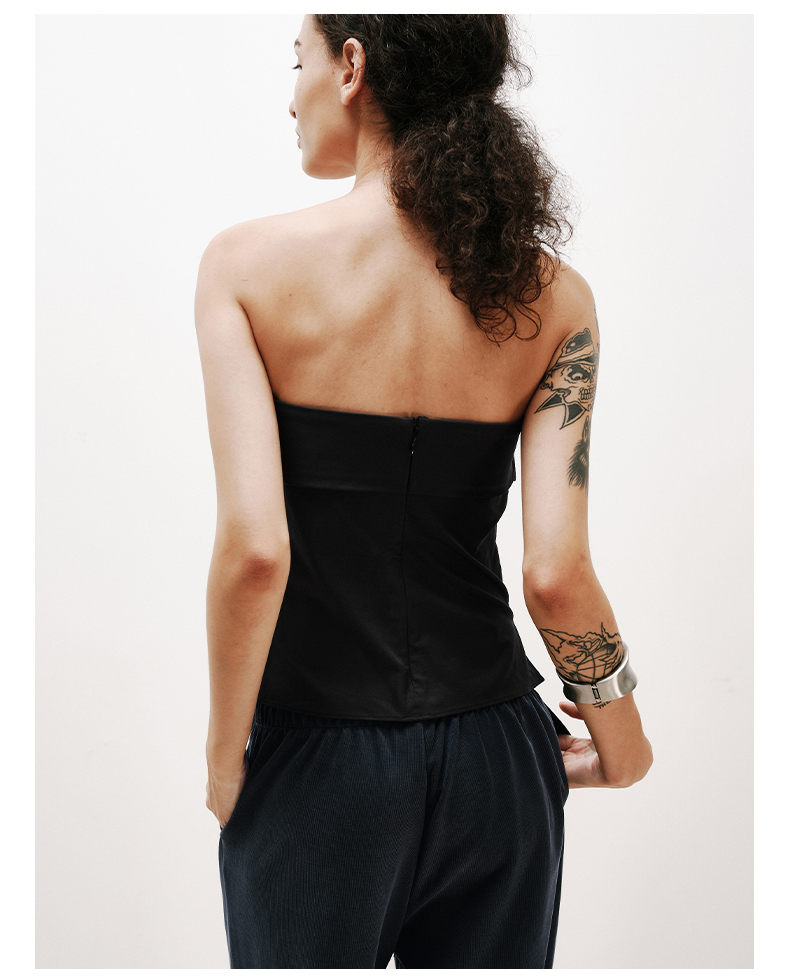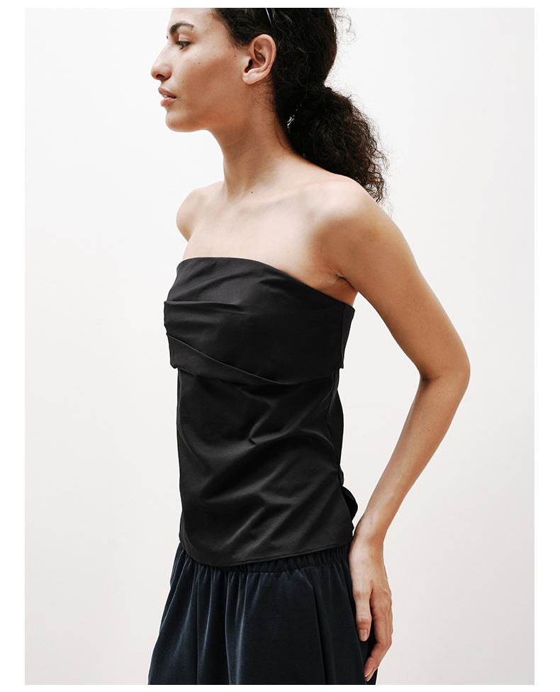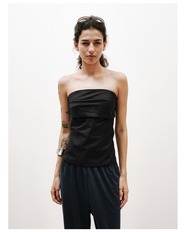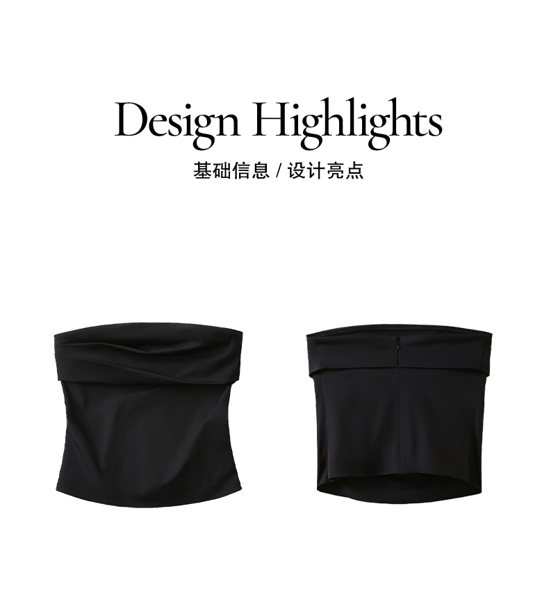 NUTH黑色短款一字肩抹胸上衣修身显瘦抹胸背心女