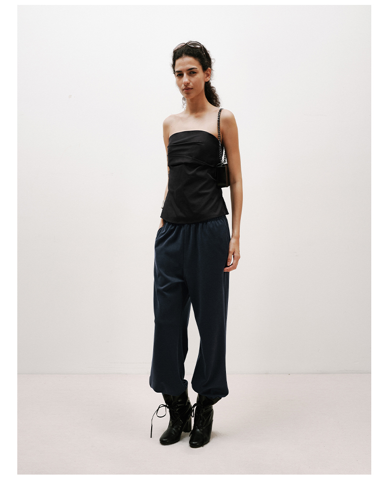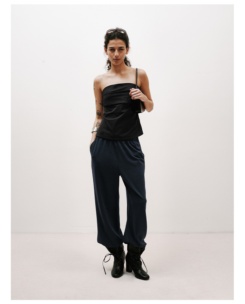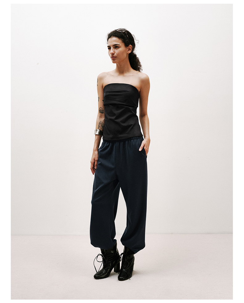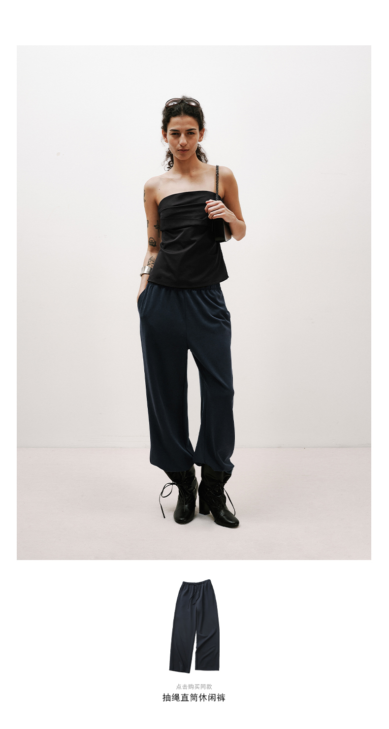 NUTH黑色短款一字肩抹胸上衣修身显瘦抹胸背心女