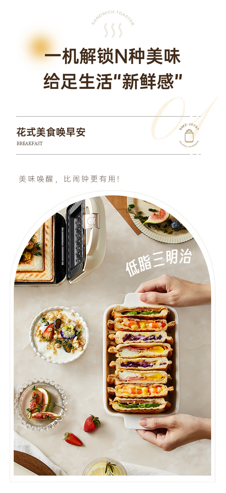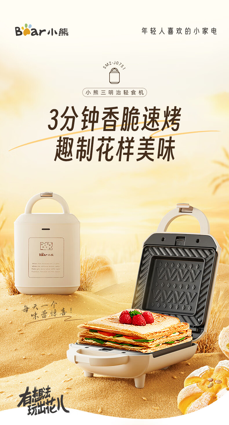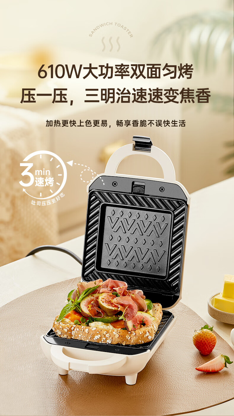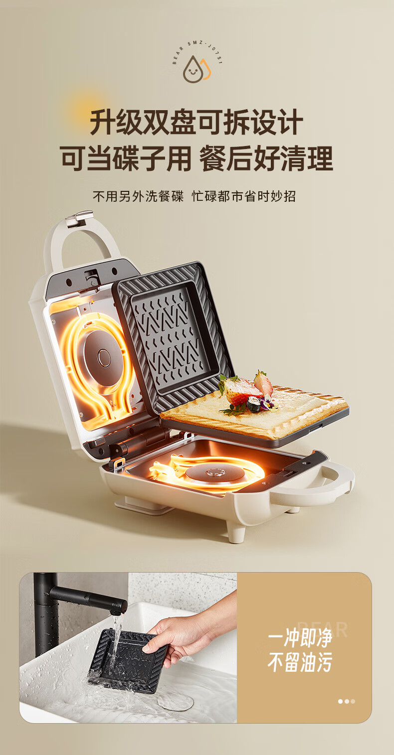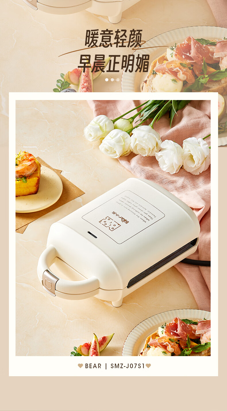 小熊(Bear)三明治机早餐机 吐司面包机华夫饼机SMZ-J07S1