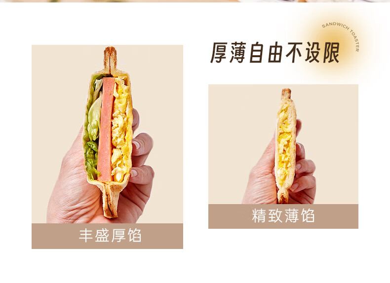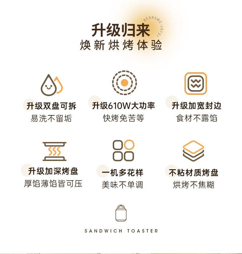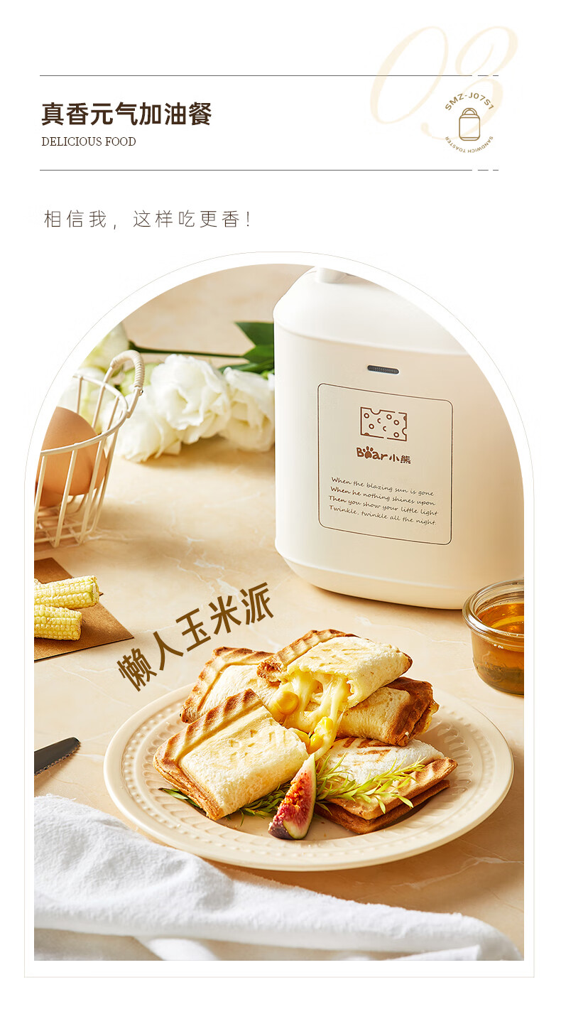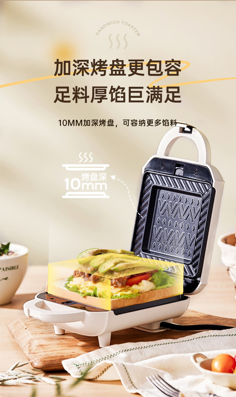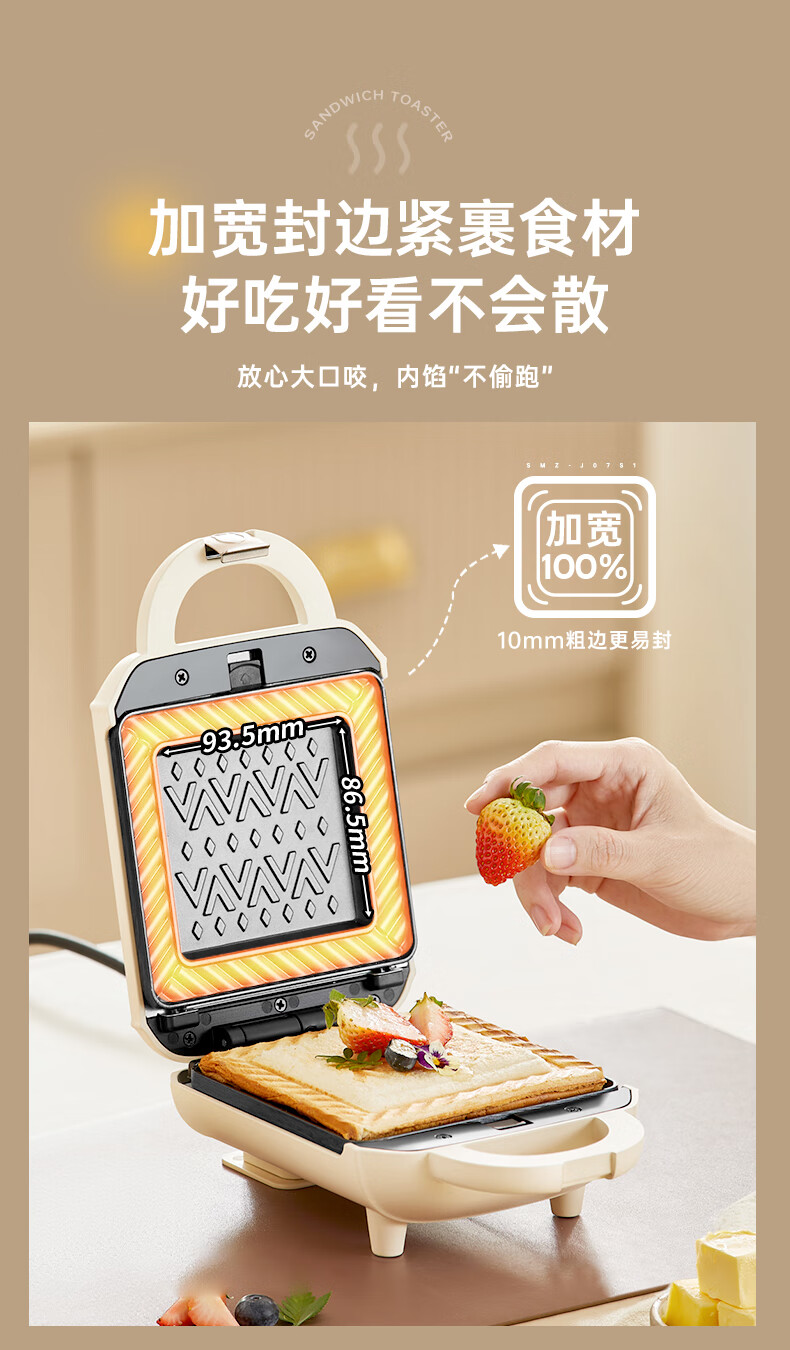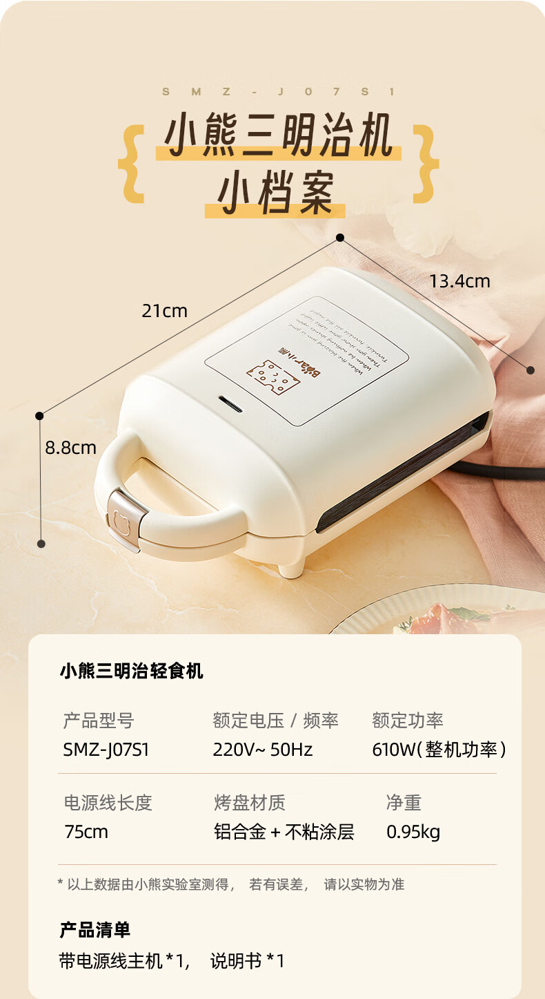 小熊(Bear)三明治机早餐机 吐司面包机华夫饼机SMZ-J07S1