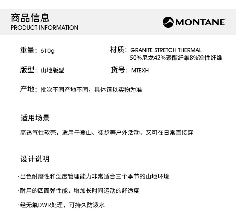 MONTANE 盟泰恩TENACITY XT男士软壳外套连帽防风山地户外连帽休闲外套