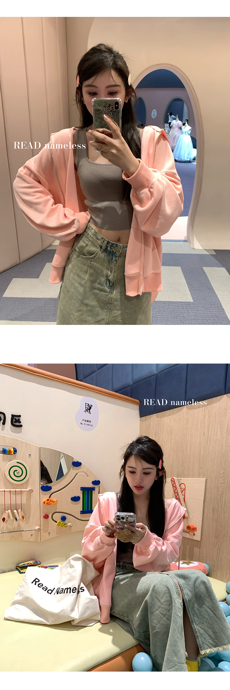 Read Nameless/橘粉卫衣+天丝背心灰色+开衩洗旧牛仔半裙