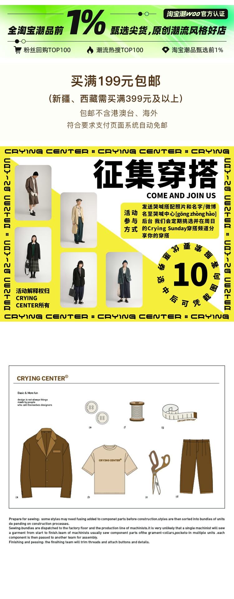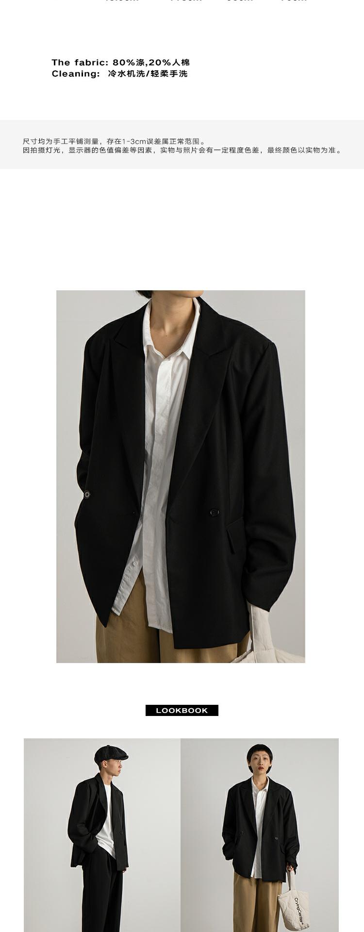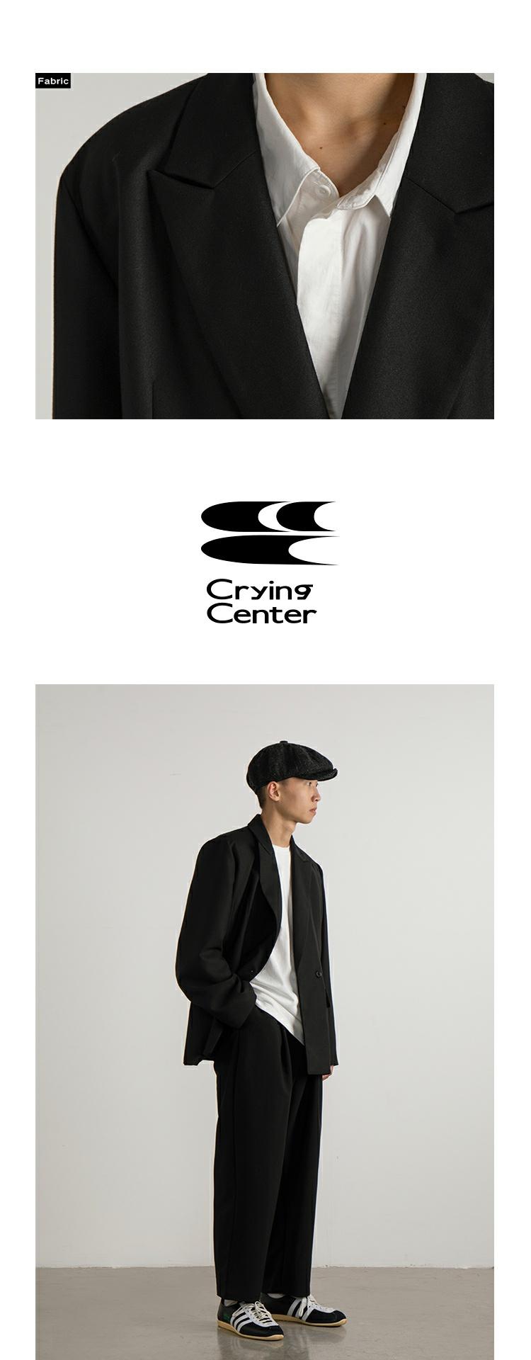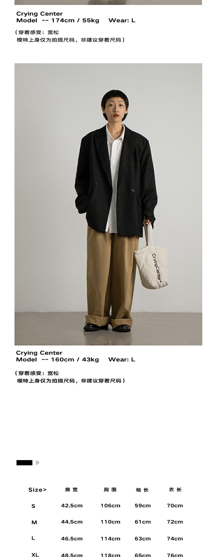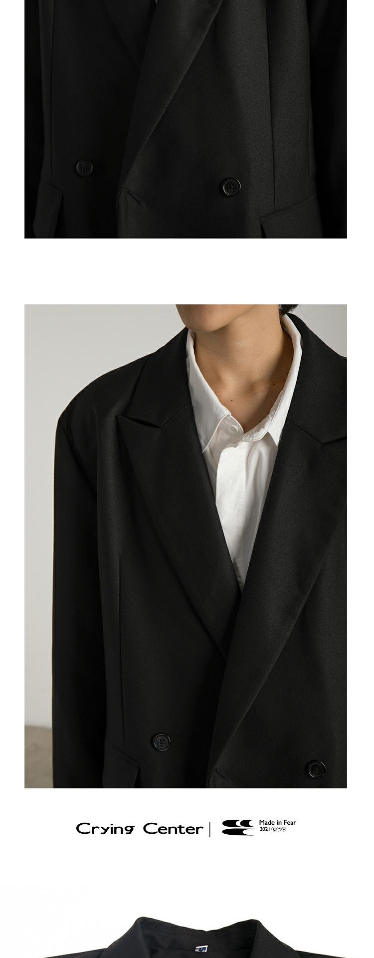 CryingCenter 重磅黑色双排扣宽松休闲西装 可拆卸垫肩 哭喊中心