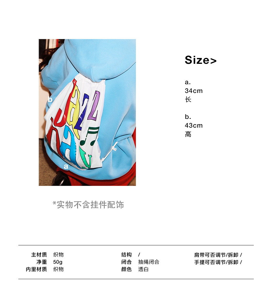 CryingCenter JazzDay 透白字母印花超轻束口双肩包 哭喊中心