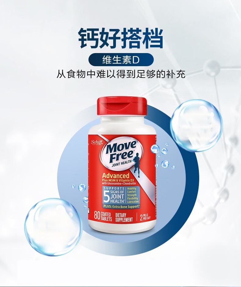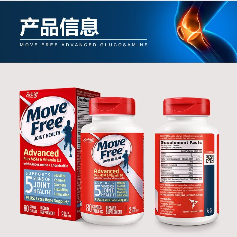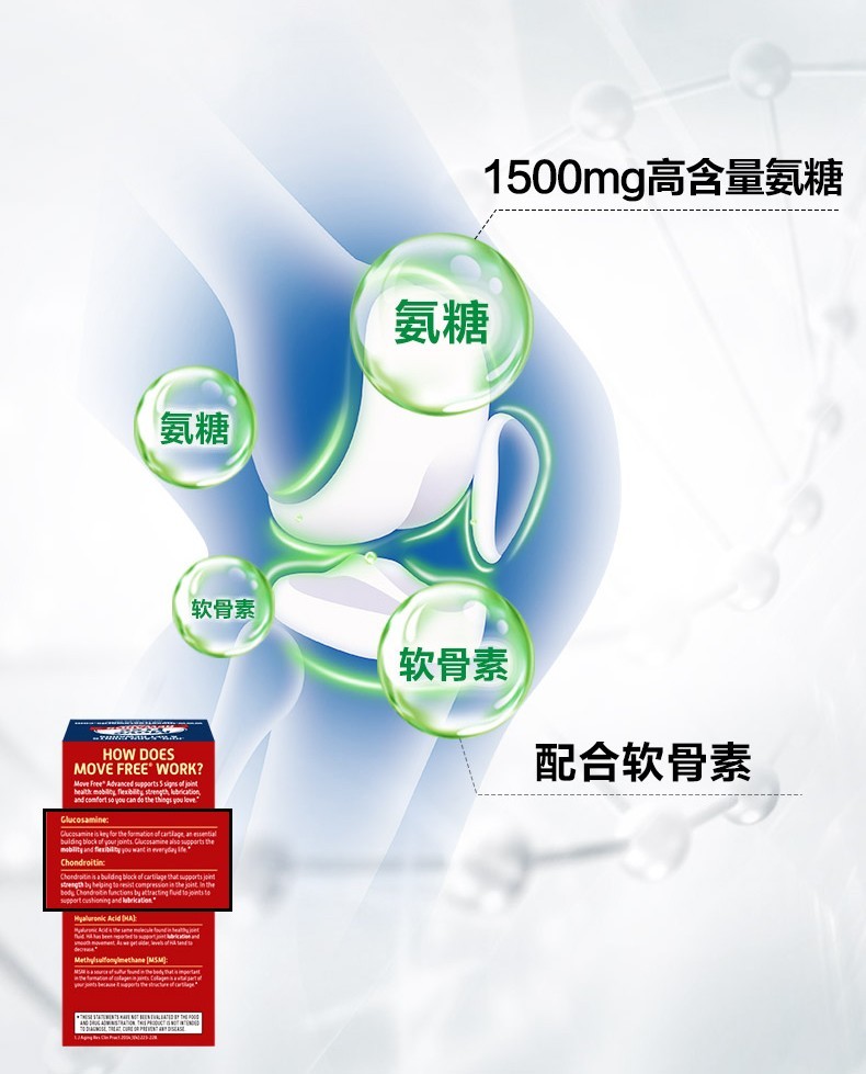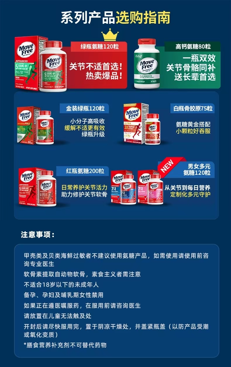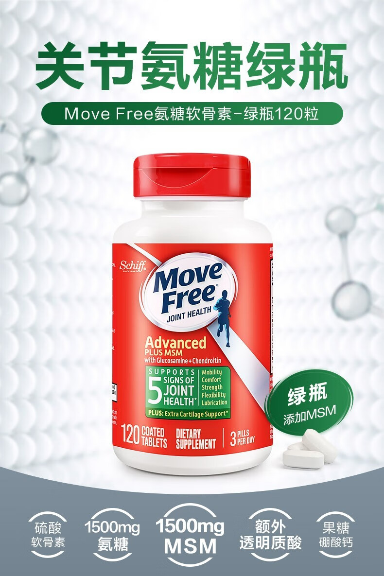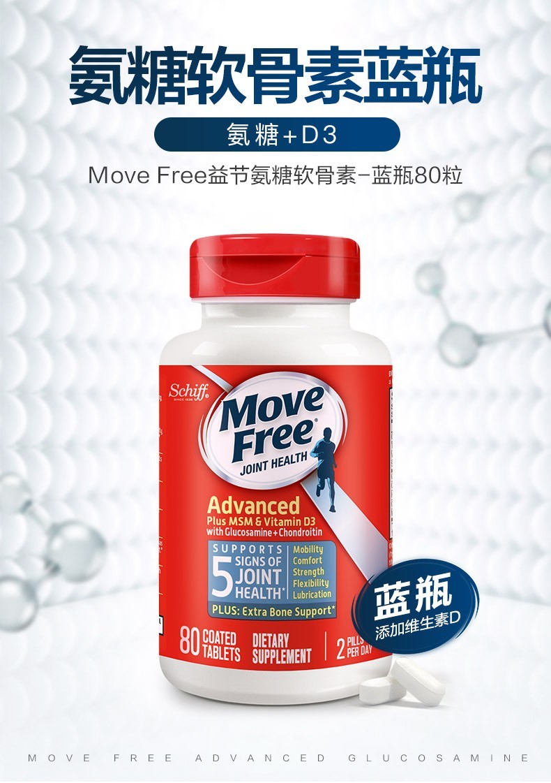 Move Free益节 维骨力氨糖软骨素钙片含MSM成人中老年人 术后修复+补钙