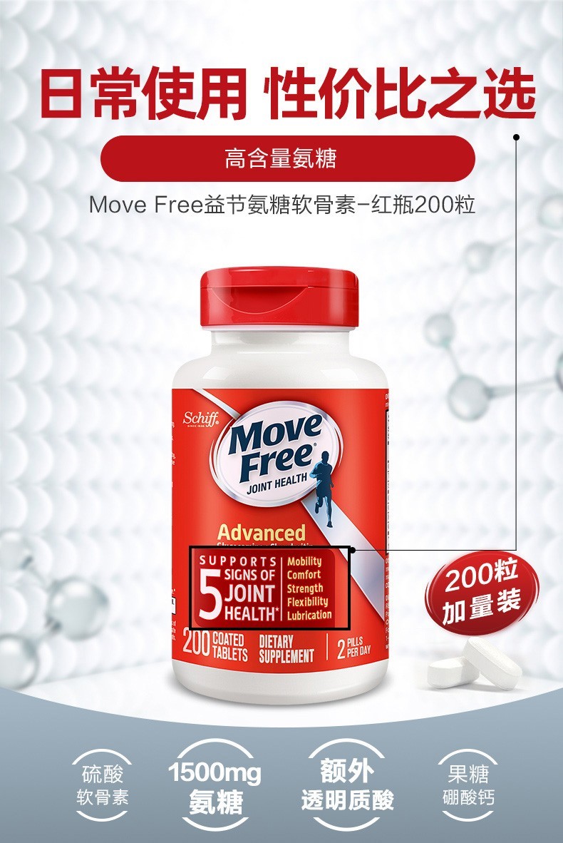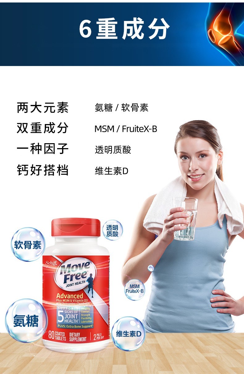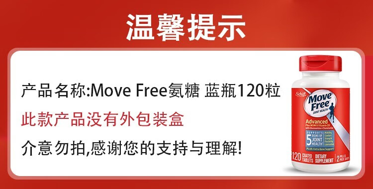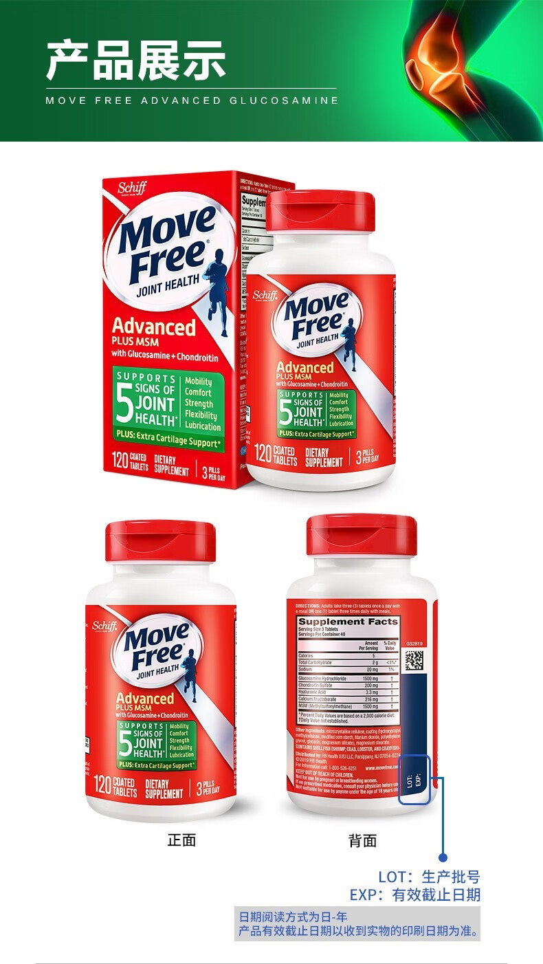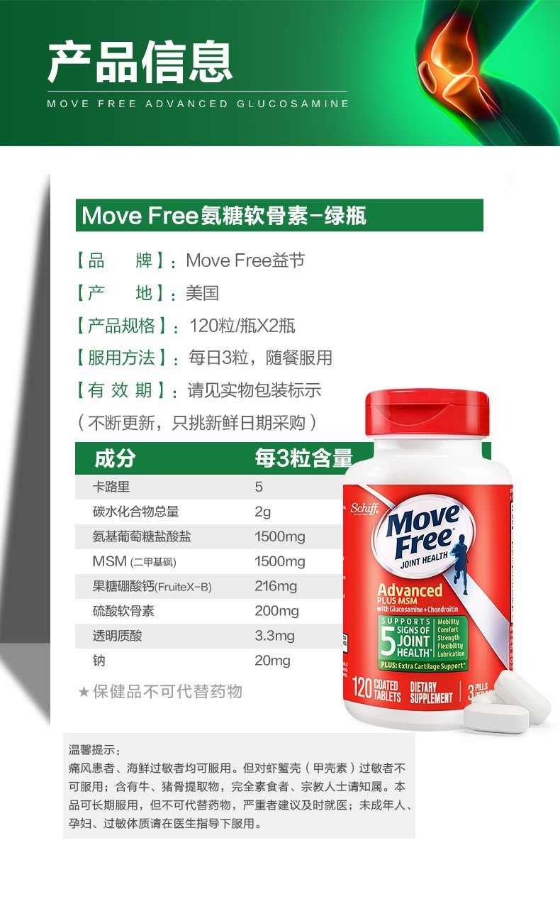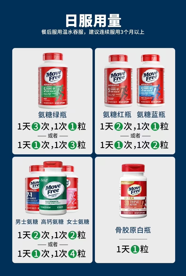 Move Free益节 维骨力氨糖软骨素钙片含MSM成人中老年人 术后修复+补钙