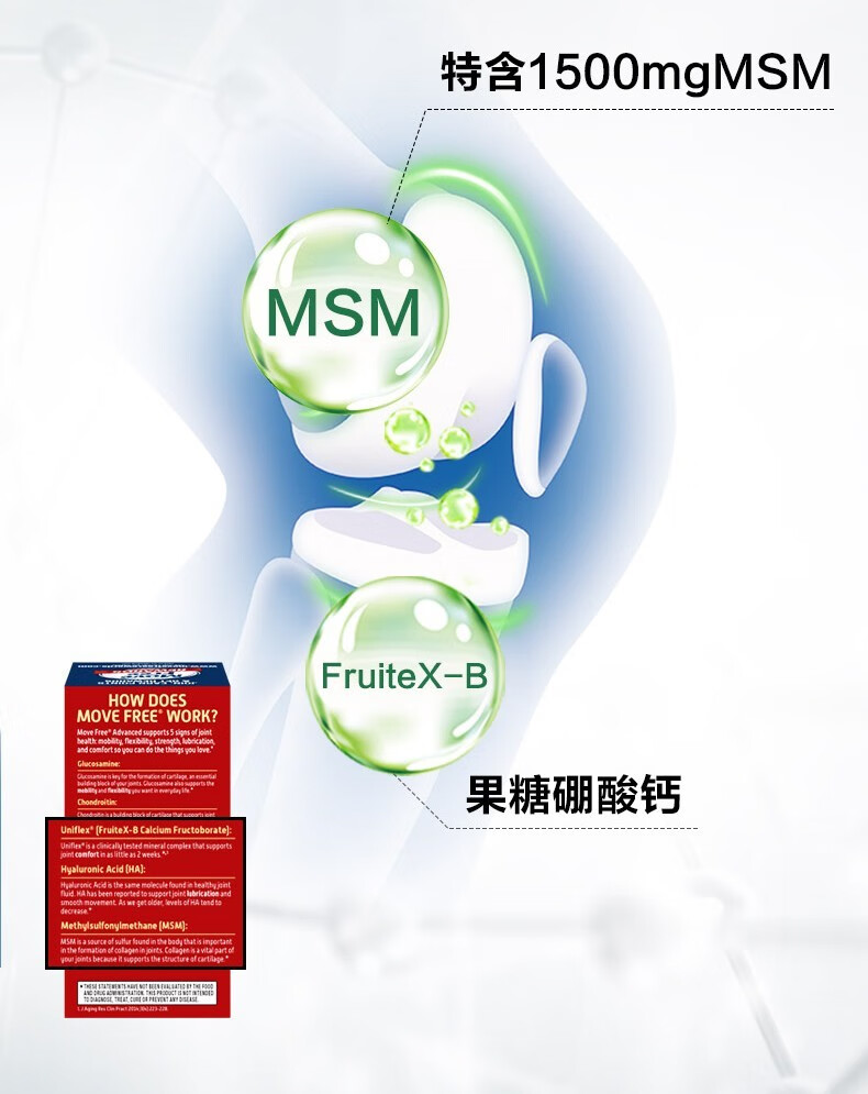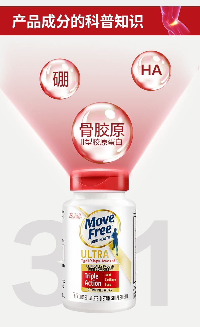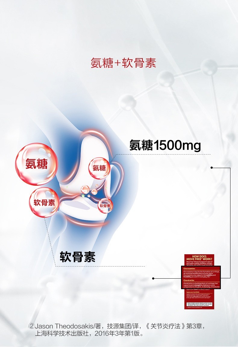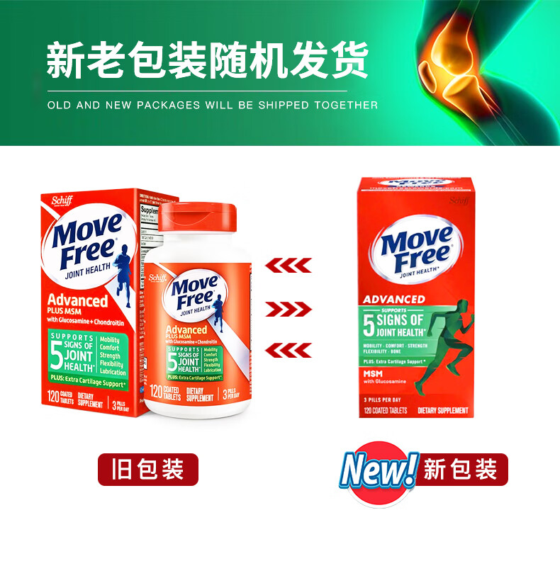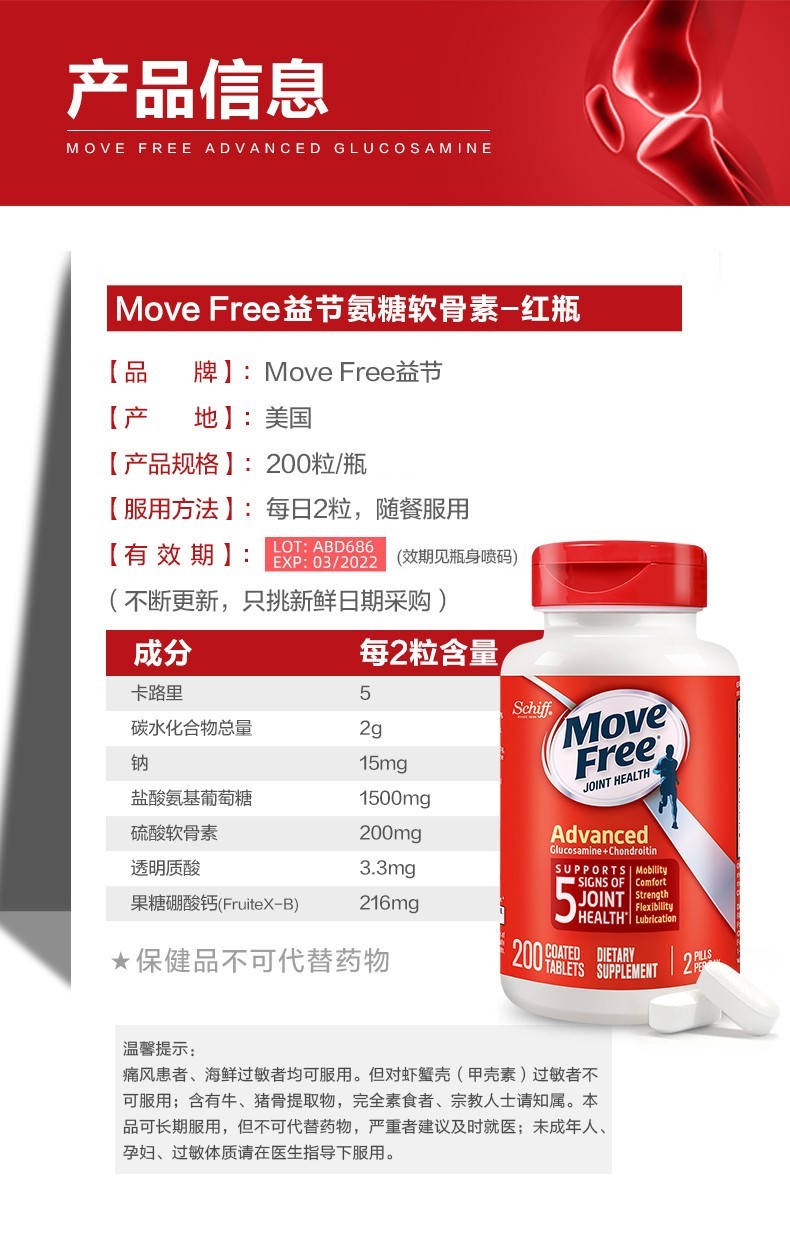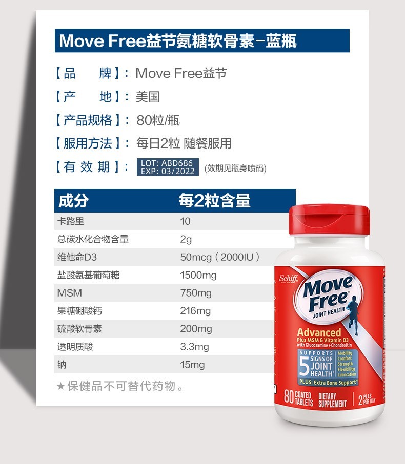 Move Free益节 维骨力氨糖软骨素钙片含MSM成人中老年人 术后修复+补钙
