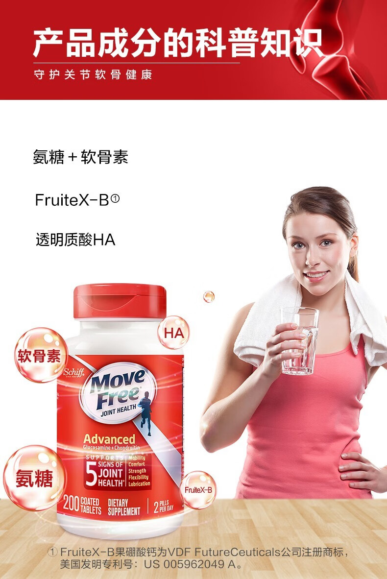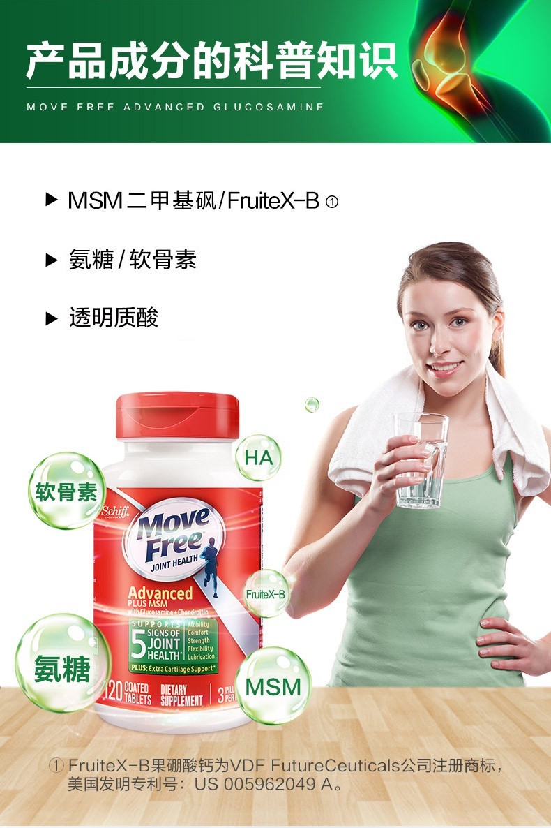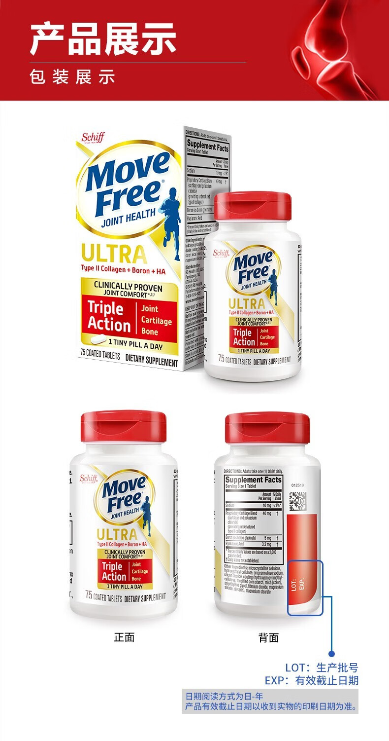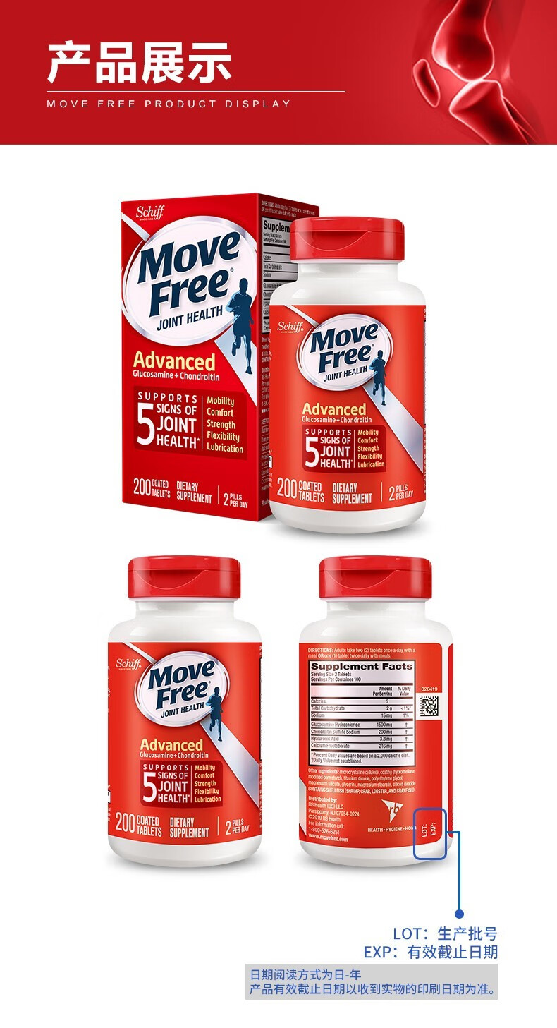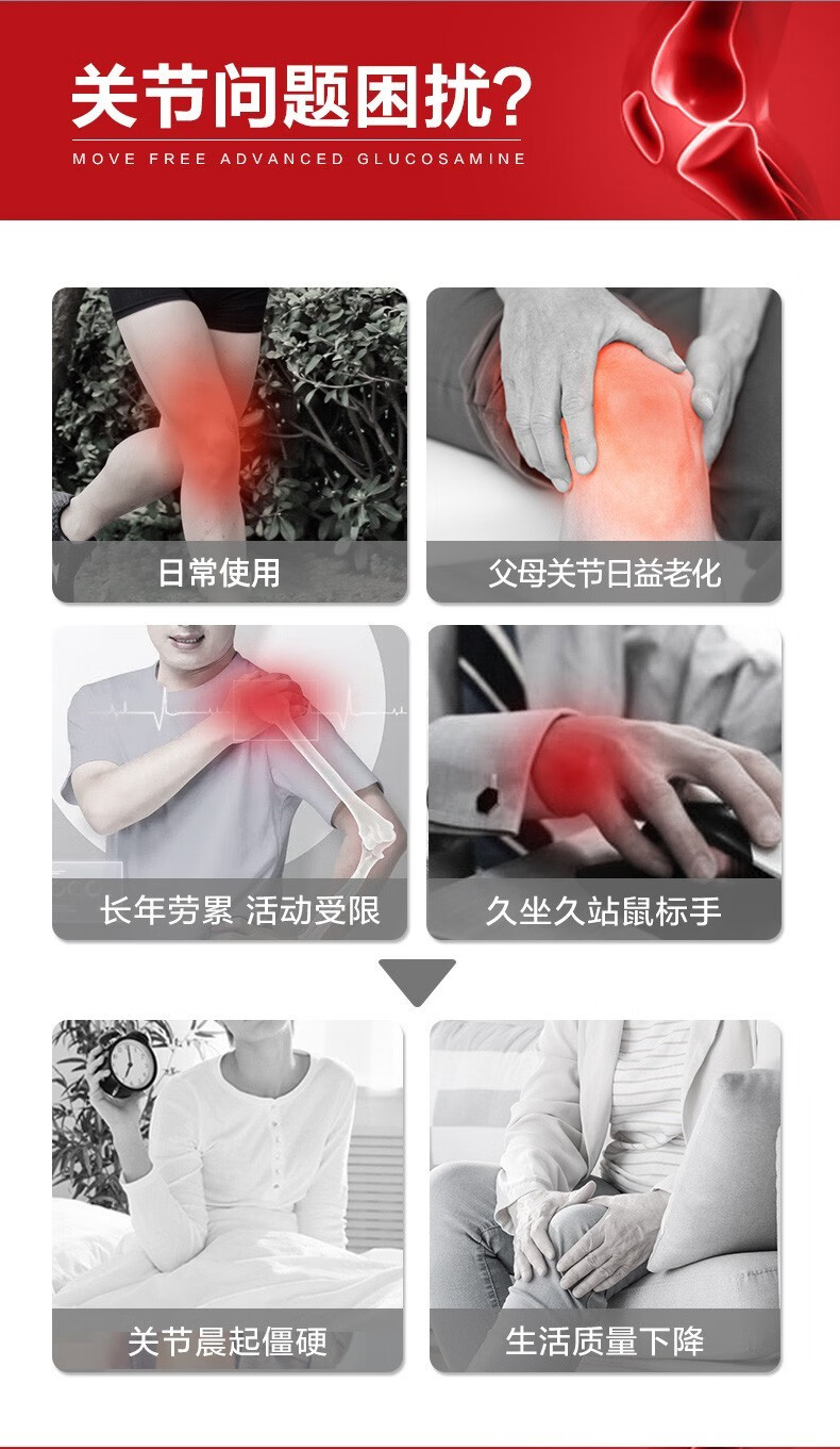 Move Free益节 维骨力氨糖软骨素钙片含MSM成人中老年人 术后修复+补钙