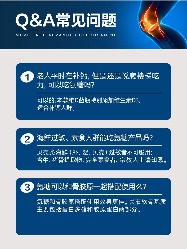 【保税仓】Move Free益节 维骨力氨糖软骨素钙片含MSM成人中老年人 术后修复+补钙