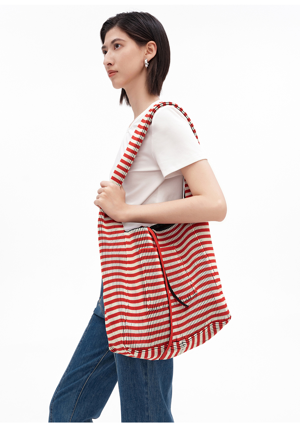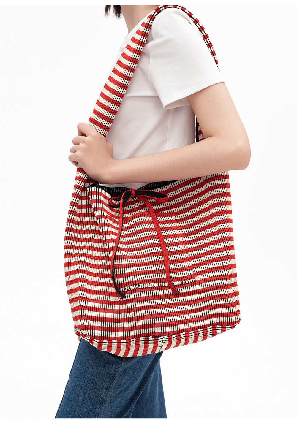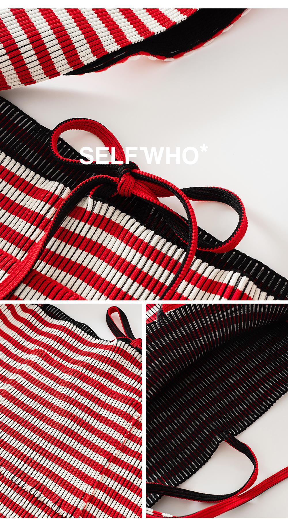 SELFWHO压褶条纹毛织包(大号)