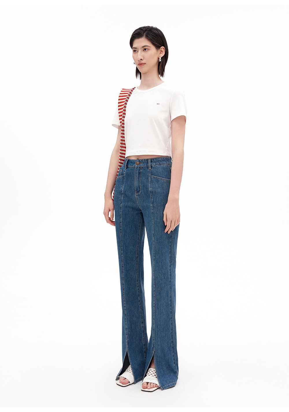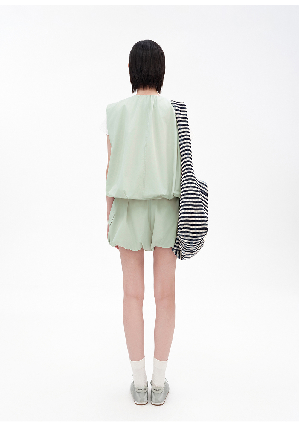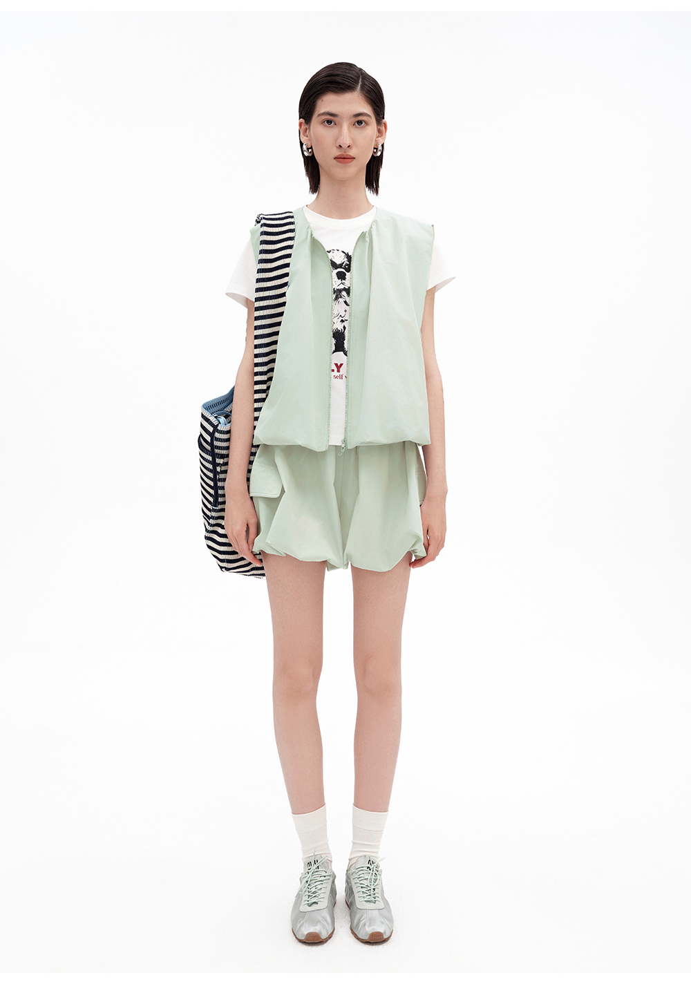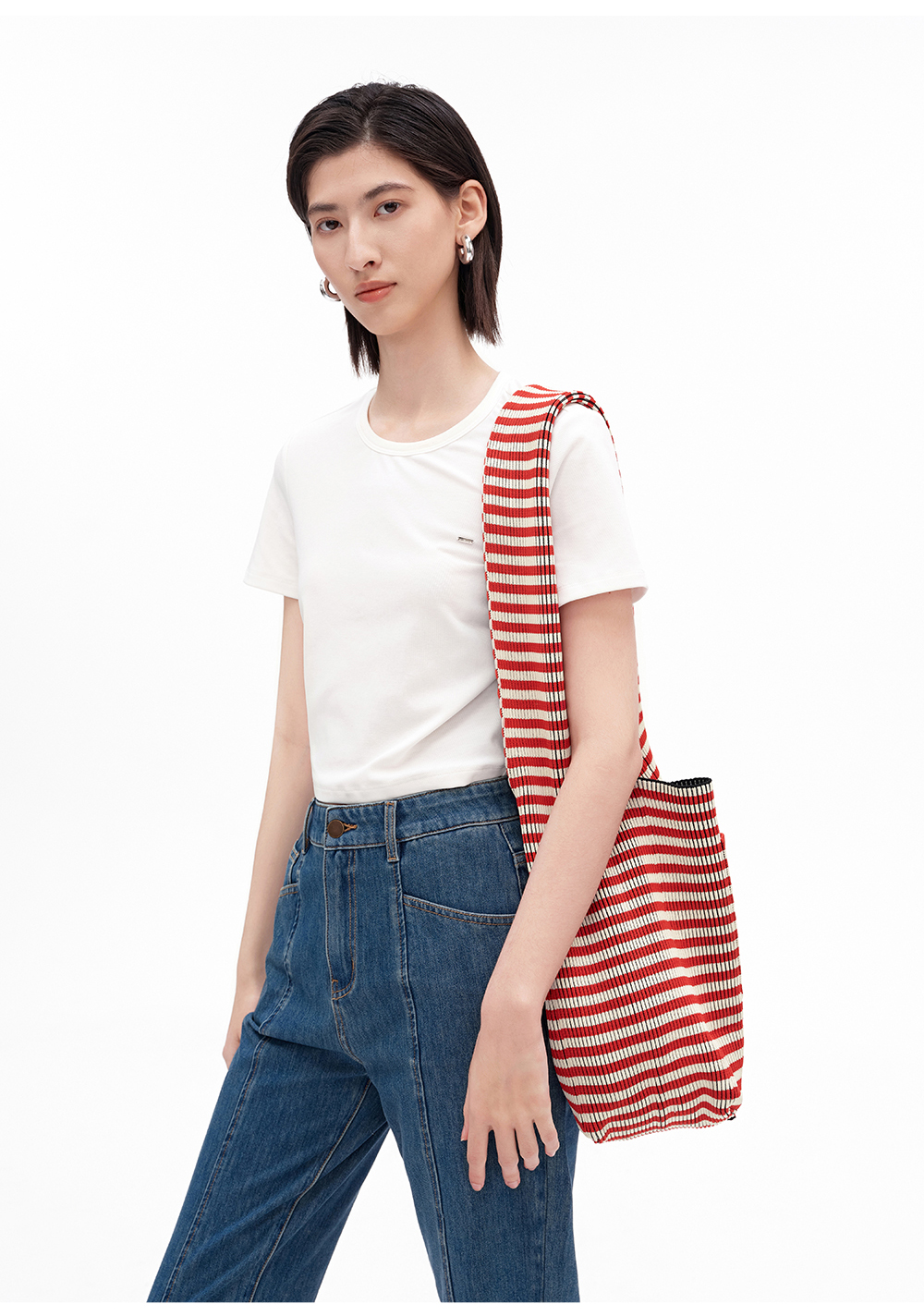 SELFWHO压褶条纹毛织包(大号)