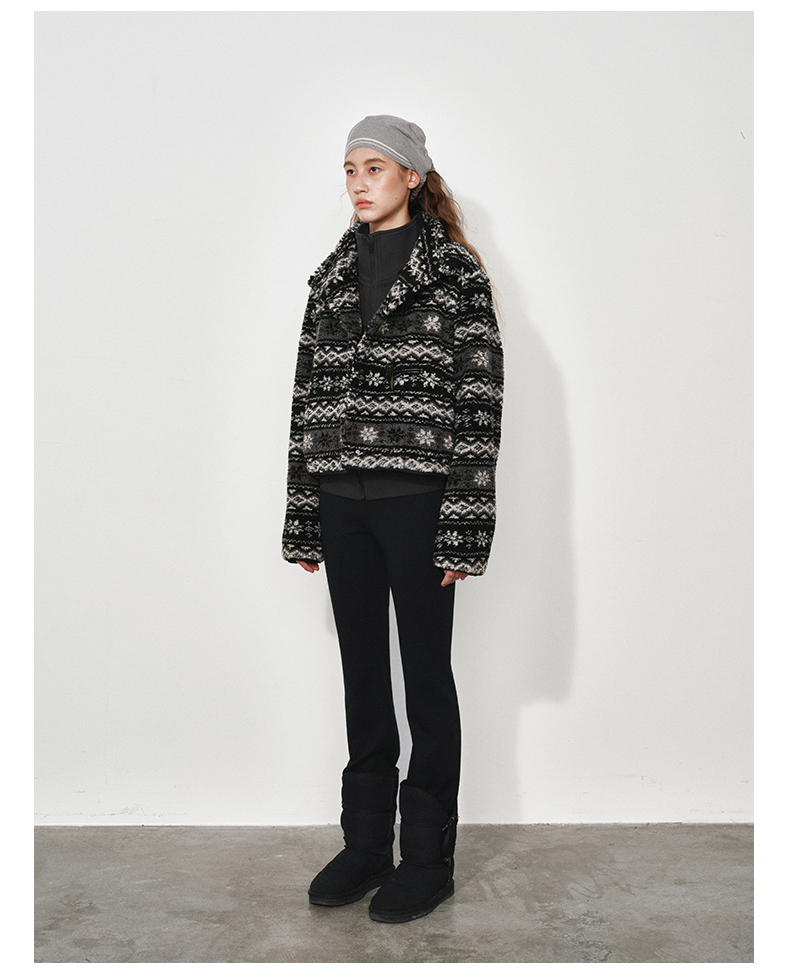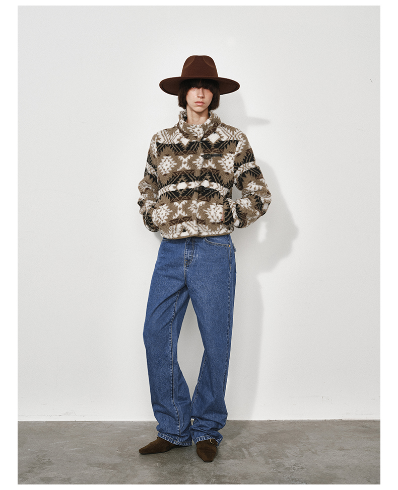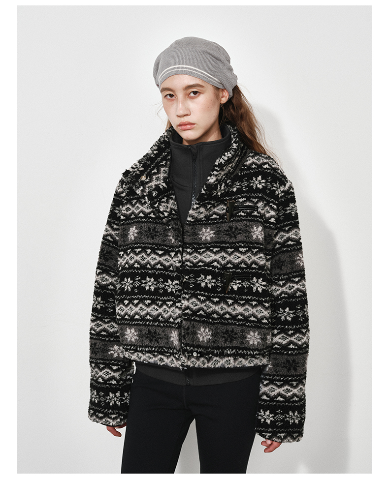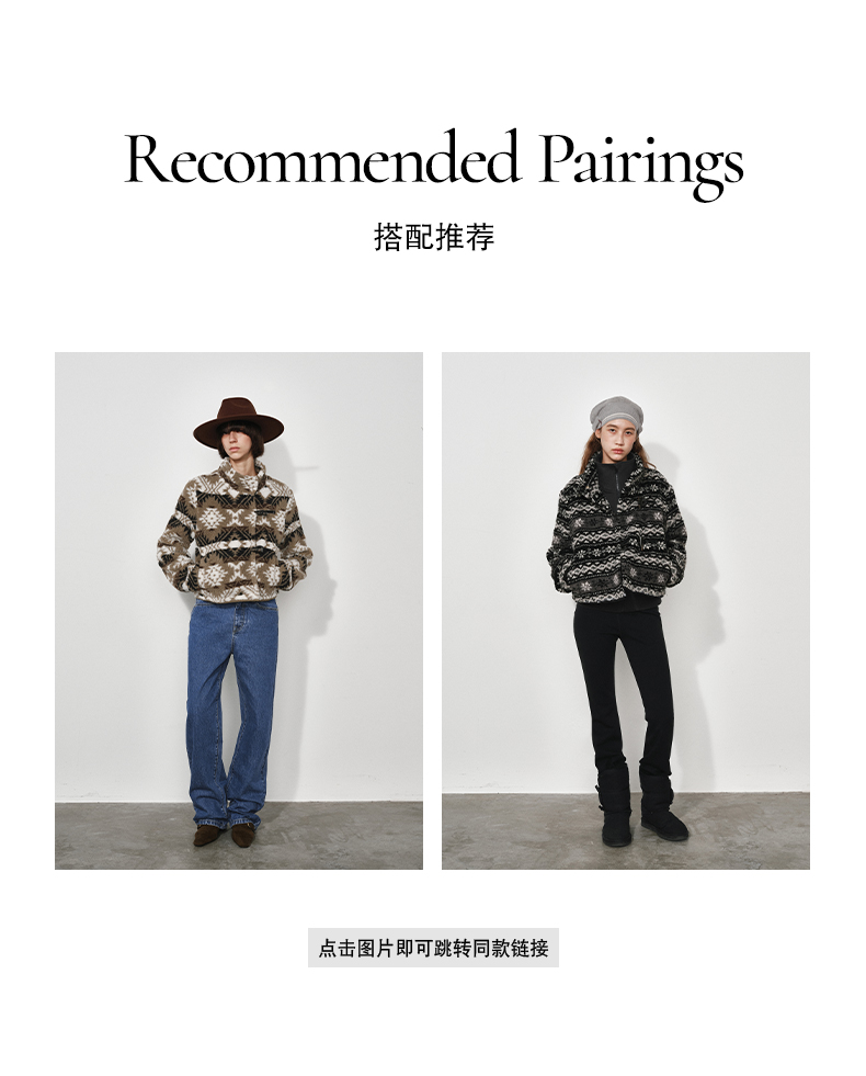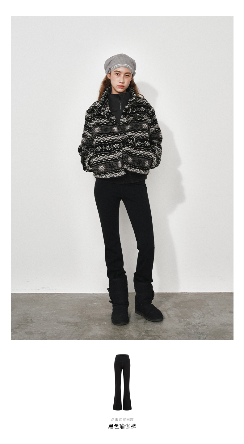 NUTH费尔岛宽松短款摇粒绒厚外套女 黑色/卡其棕色(发货时间同步天猫)