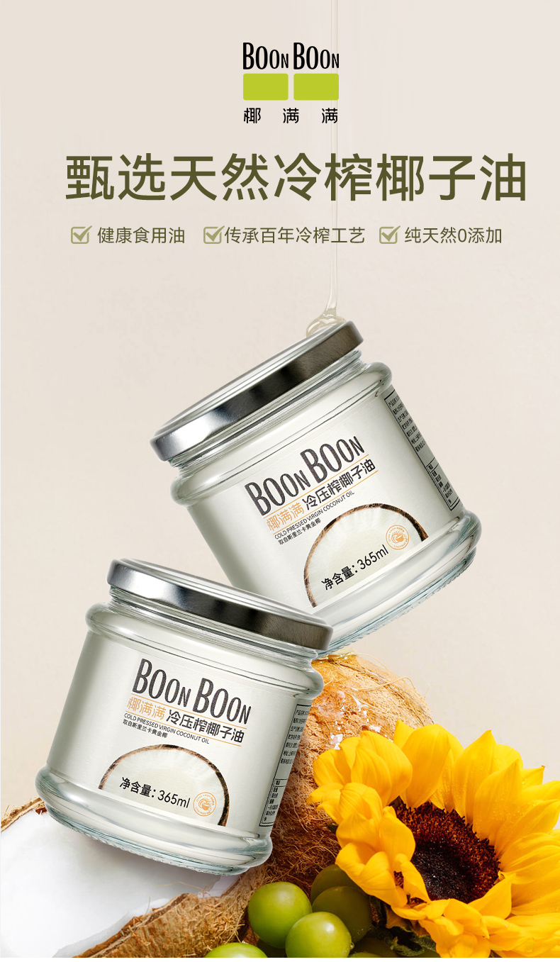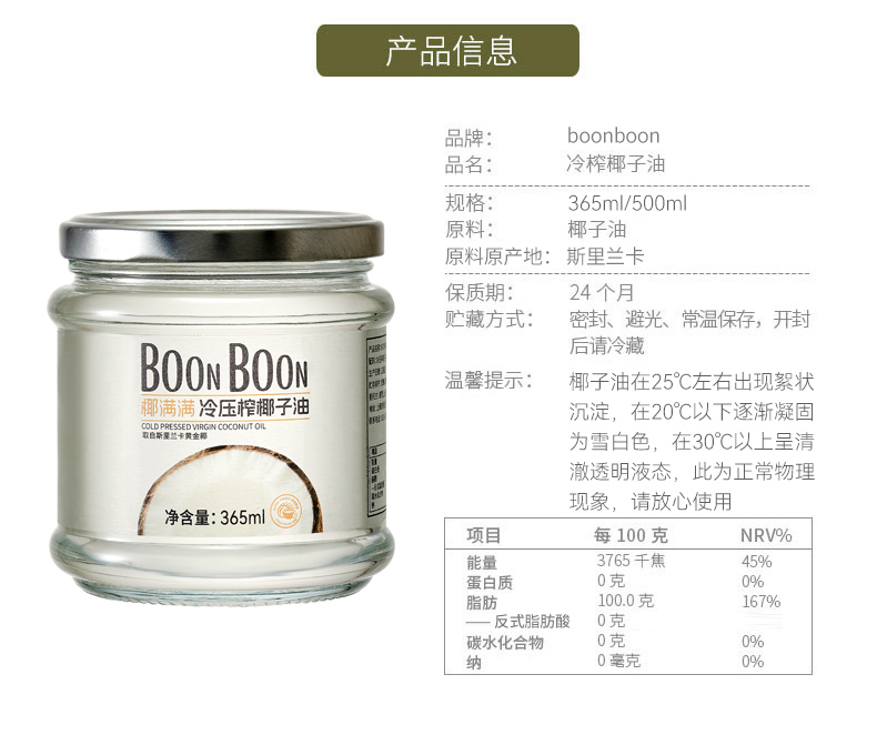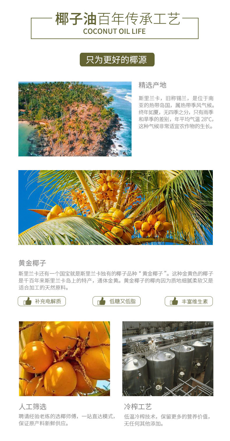 椰满满斯里兰卡冷榨椰子油365ml/瓶