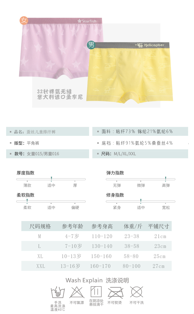 【商品名称】草本初色儿童莫代尔蚕丝抑菌内裤