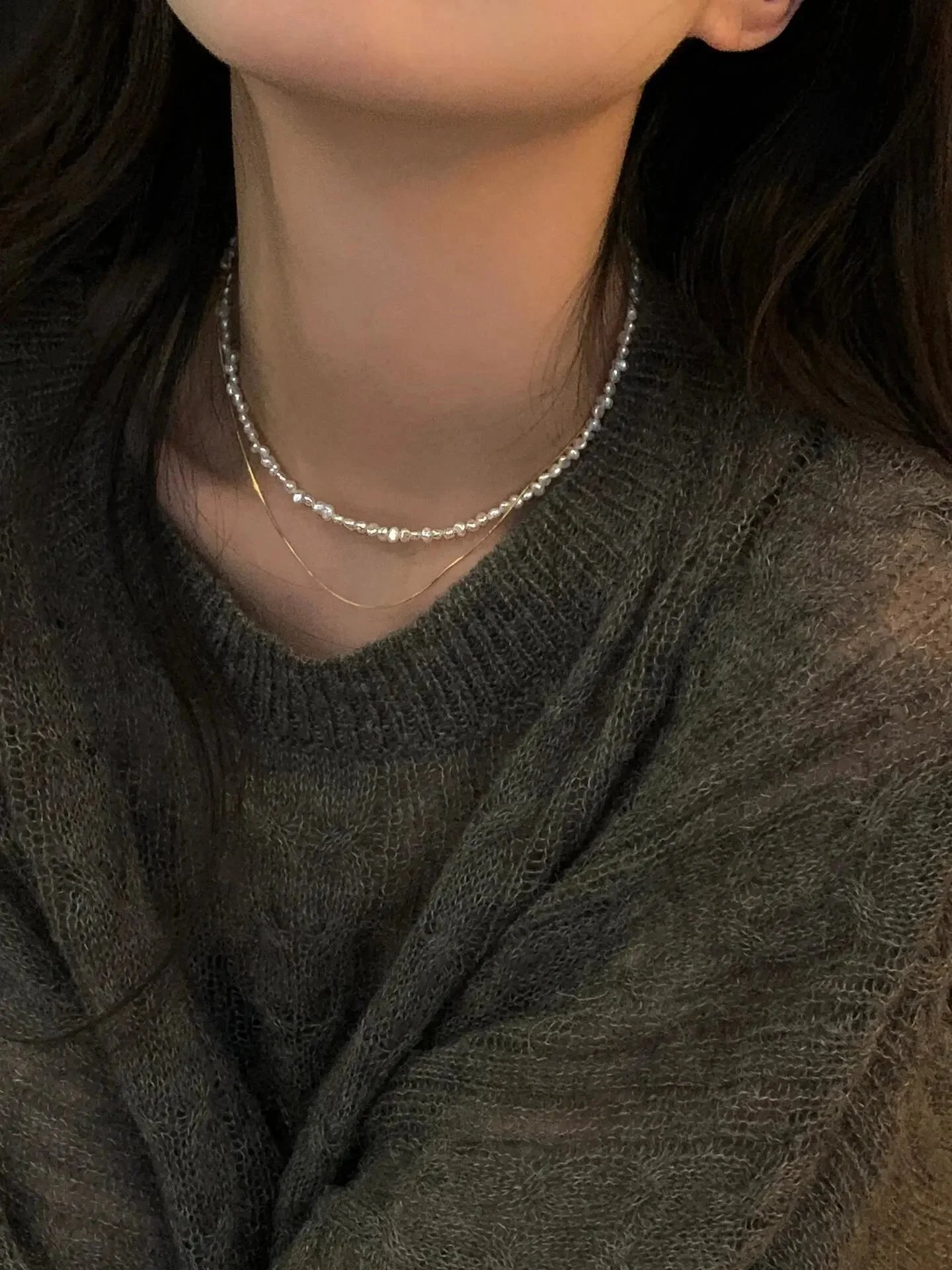 不管是单独佩戴还是叠加佩戴, 更适合中国宝宝体质的碎银项链,百搭又精致!~