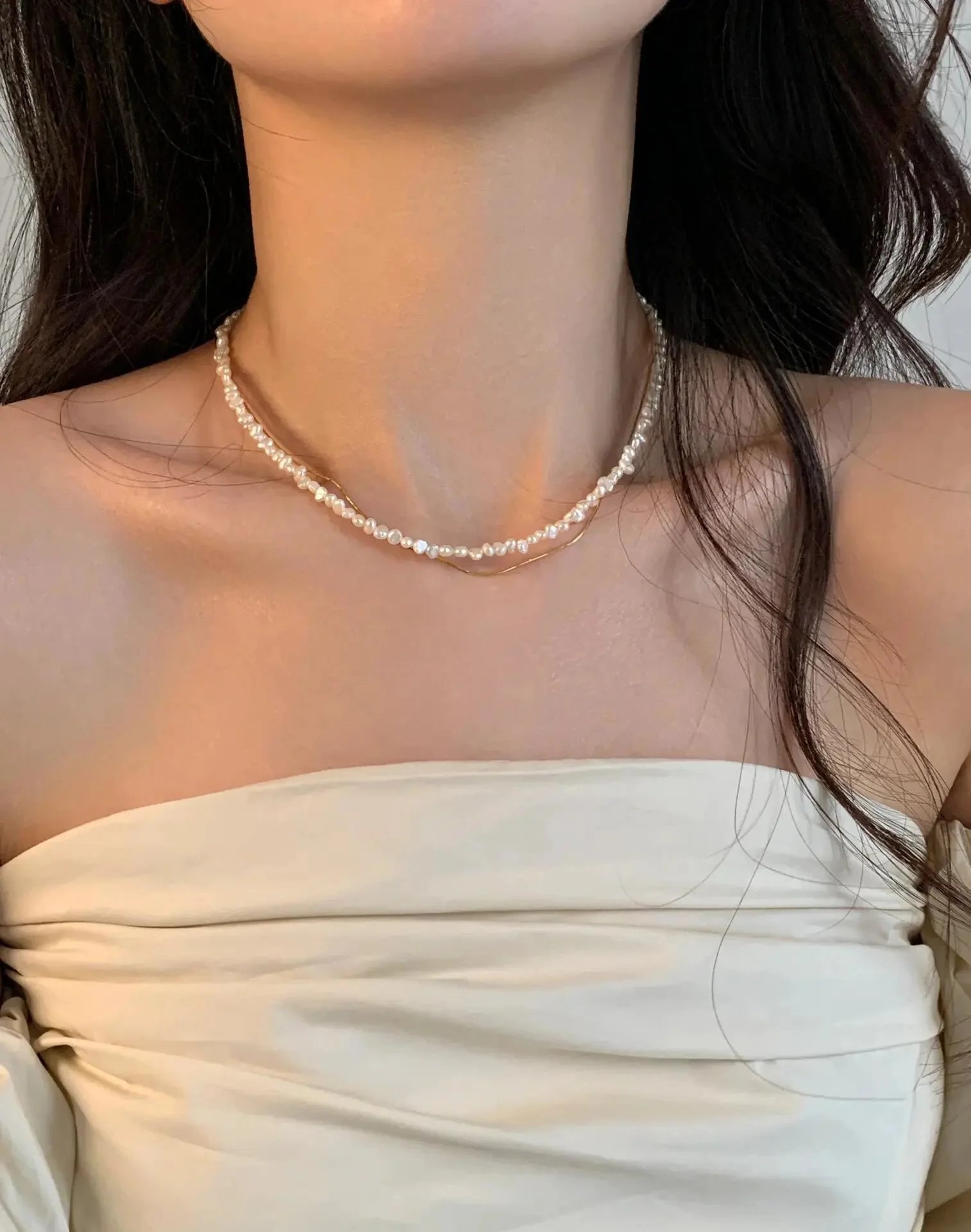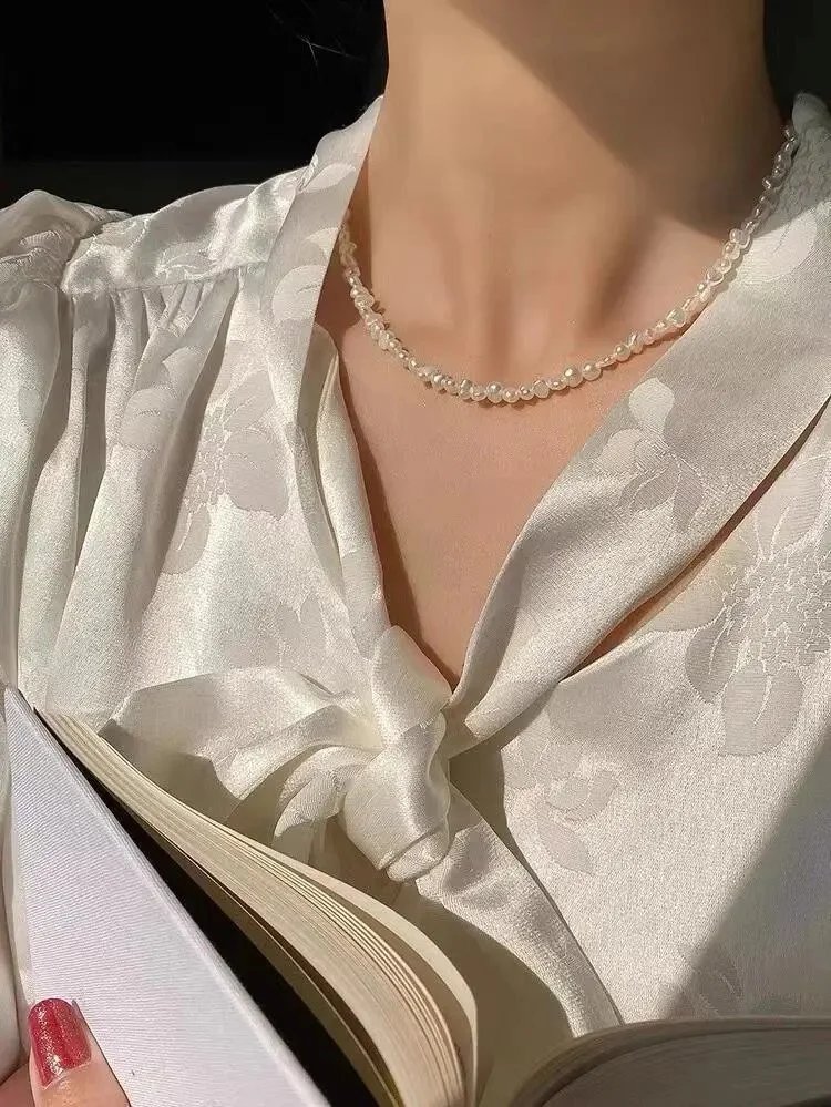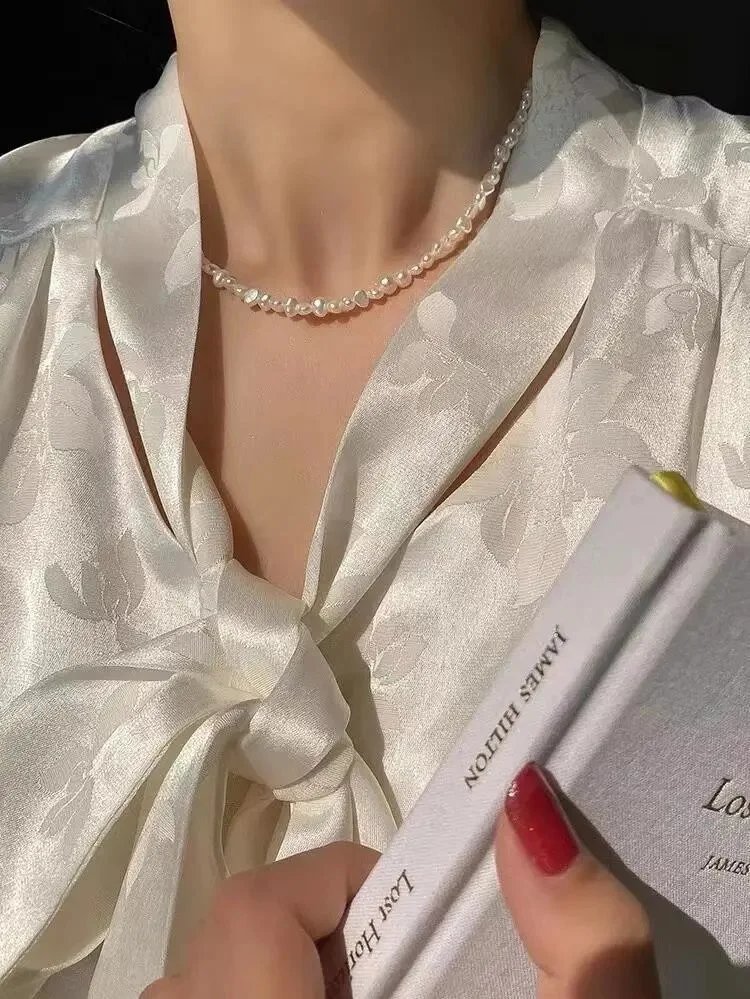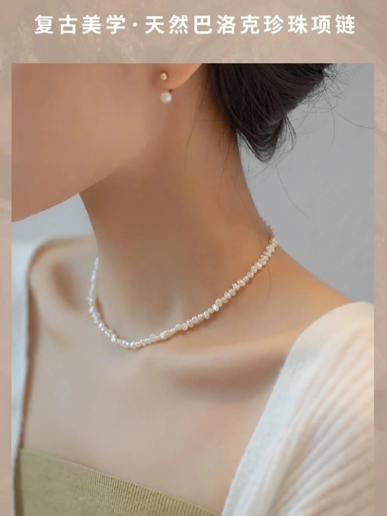 这款巴洛克珍珠项链,珠子选用的是 3.5-4mm巴洛克淡水珍珠制作, 是适合大部分通勤、休闲穿搭的一款项链, 减龄必备饰品,佩戴率高出片效果好,秋冬极简穿搭的点睛之笔!~
