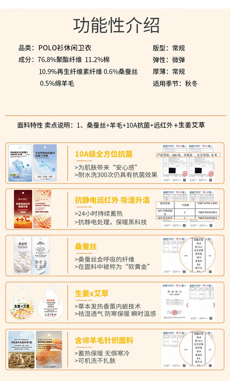【10A抗菌羊毛桑蚕丝男士翻领长袖POLO衫】秋冬季休闲聚热保暖卫衣男