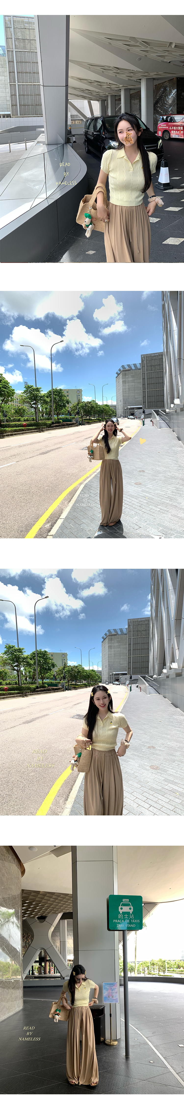 Read Nameless /鹅黄小樱桃polo短袖+奶茶色顺顺裤