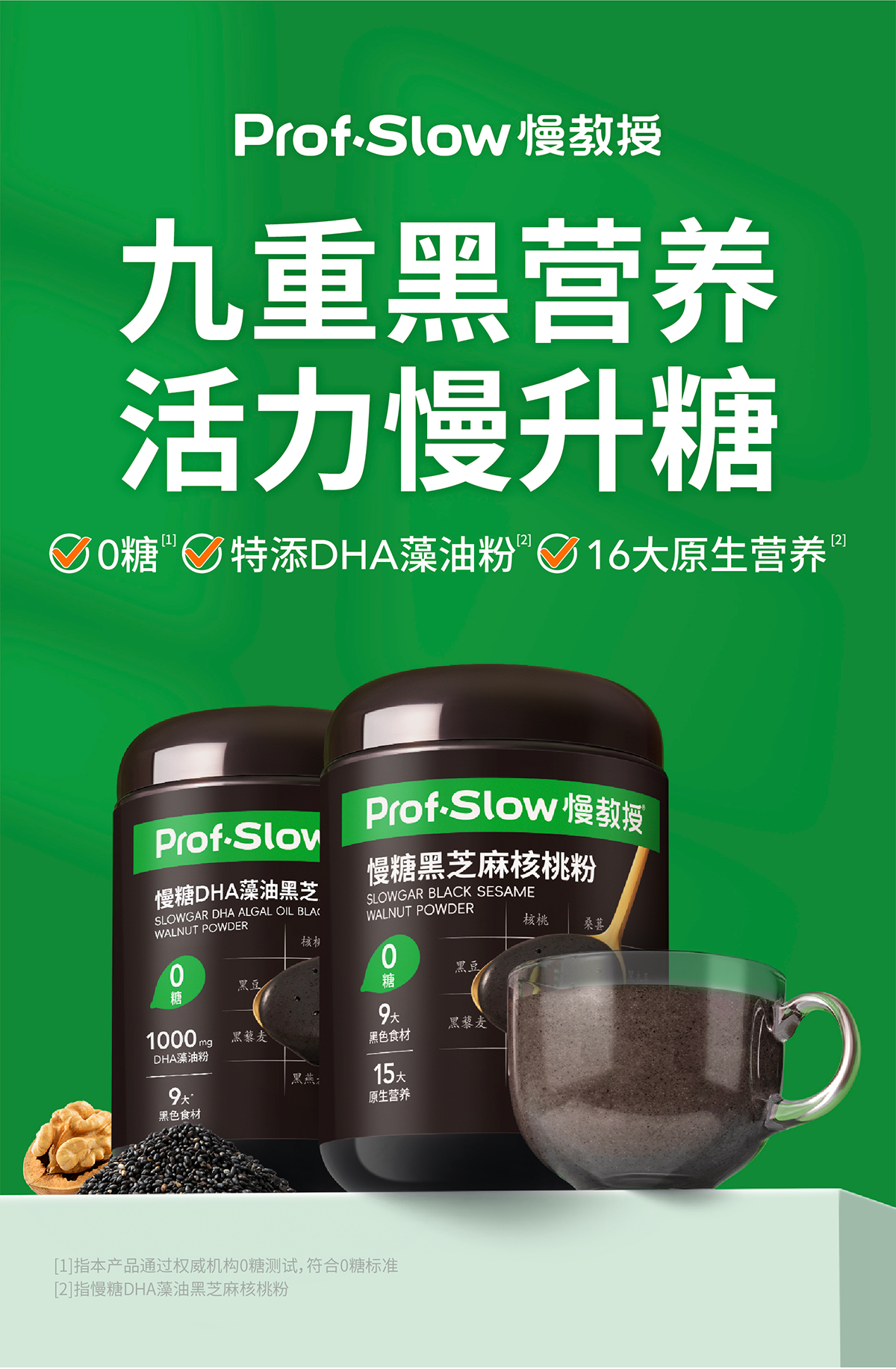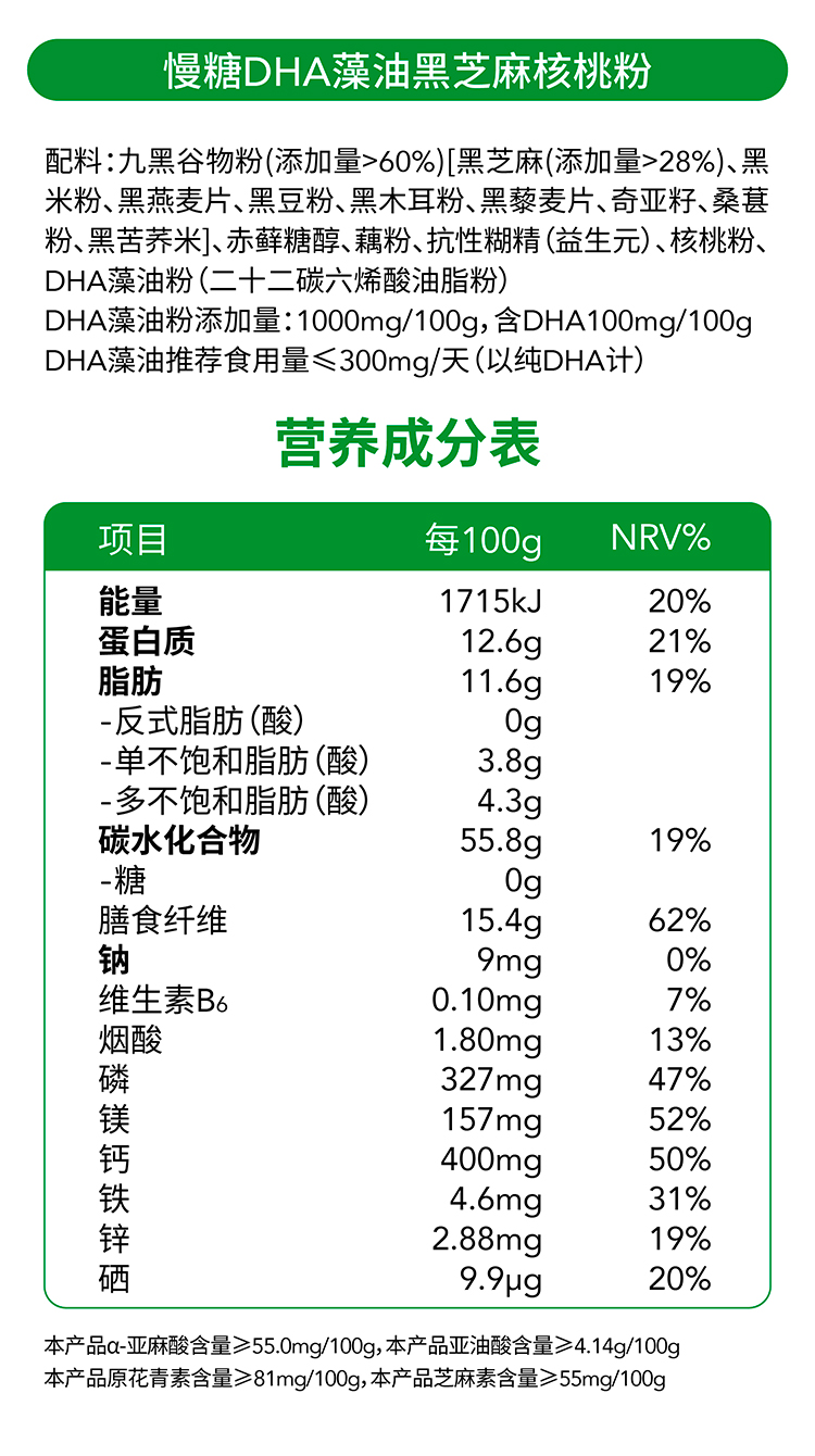 慢教授 | 慢糖DHA藻油黑芝麻核桃粉