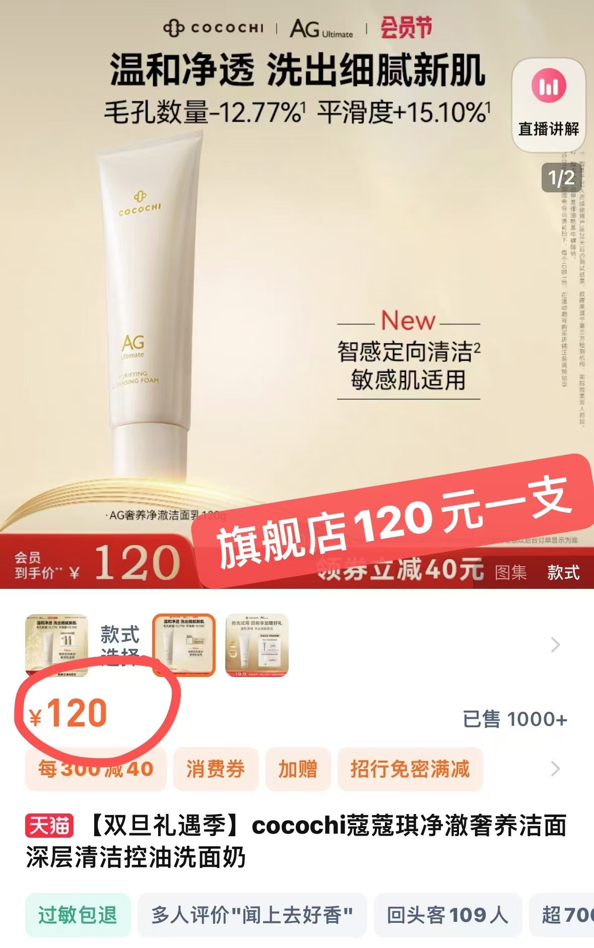 🔥秒杀价79元❗❗几十价位千元洗感洗面奶【COCOCHI蔻蔻琪AG洁面乳120g】1⃣支可用大半年!洗得干净不紧绷,适用多种肤质,敏感肌安心冲!