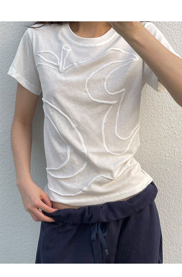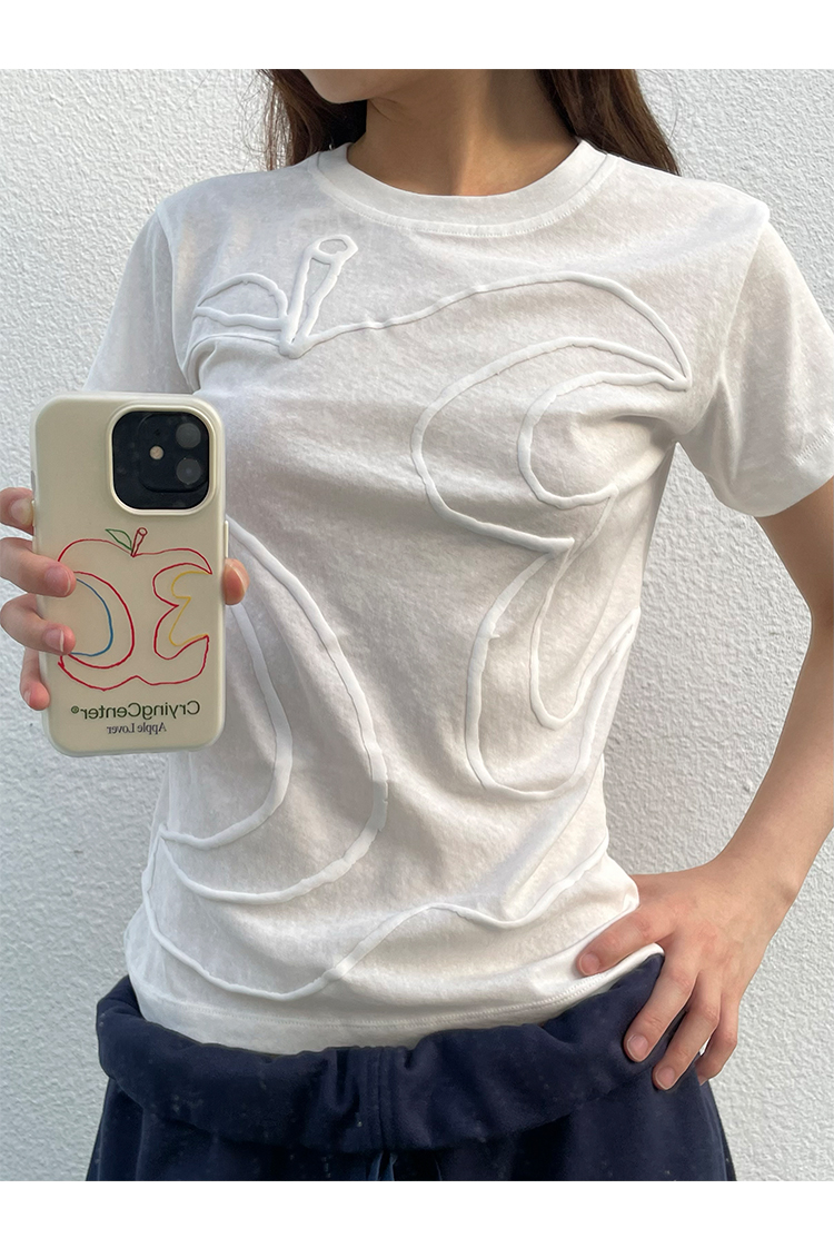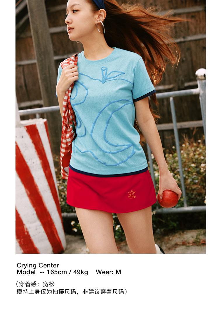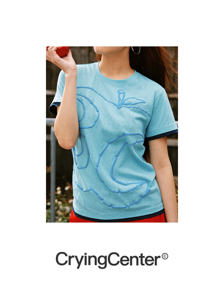 CryingCenter半透雪花竹节棉发泡3c苹果印花正肩修身短袖哭喊中心