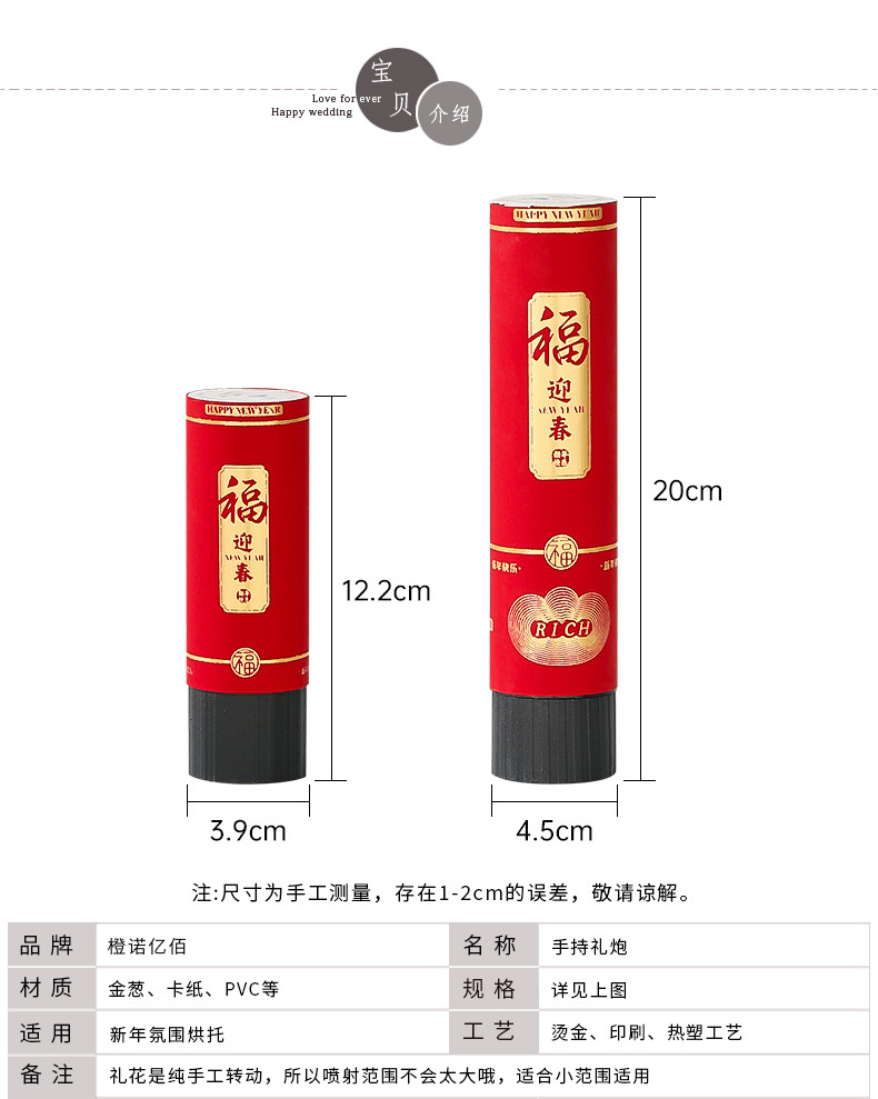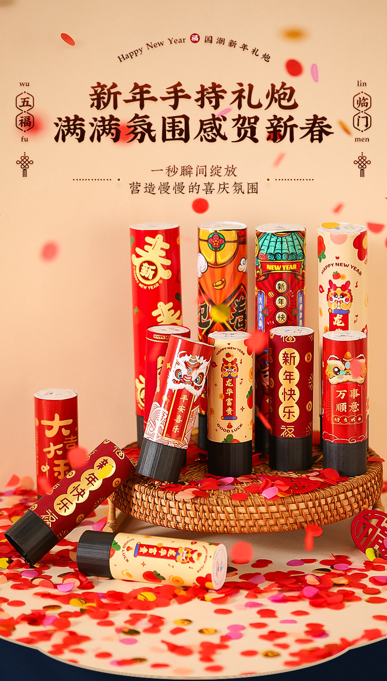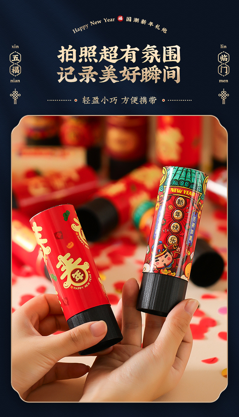 【氛围感道具❗️国潮新年手持礼炮】一秒瞬间绽放,小巧便携,蛇年大吉,新年快乐小礼炮,喷彩带手持礼花喷筒,春节过年装饰道具好礼新年礼盒年货礼盒