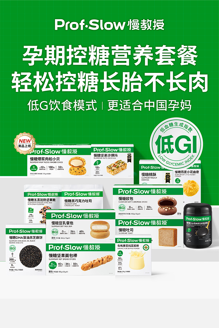 「慢教授ProfSlow」(原慢糖家),专注于科学控糖的健康营养品牌。由2位浙大校友创立,联合全球优秀的食品科学家和健康营养专家,为有控糖需求的用户研发好吃、低升糖的健康食品和营养补充剂。