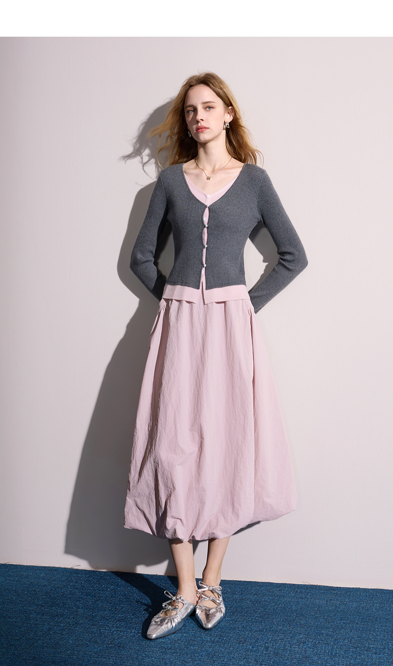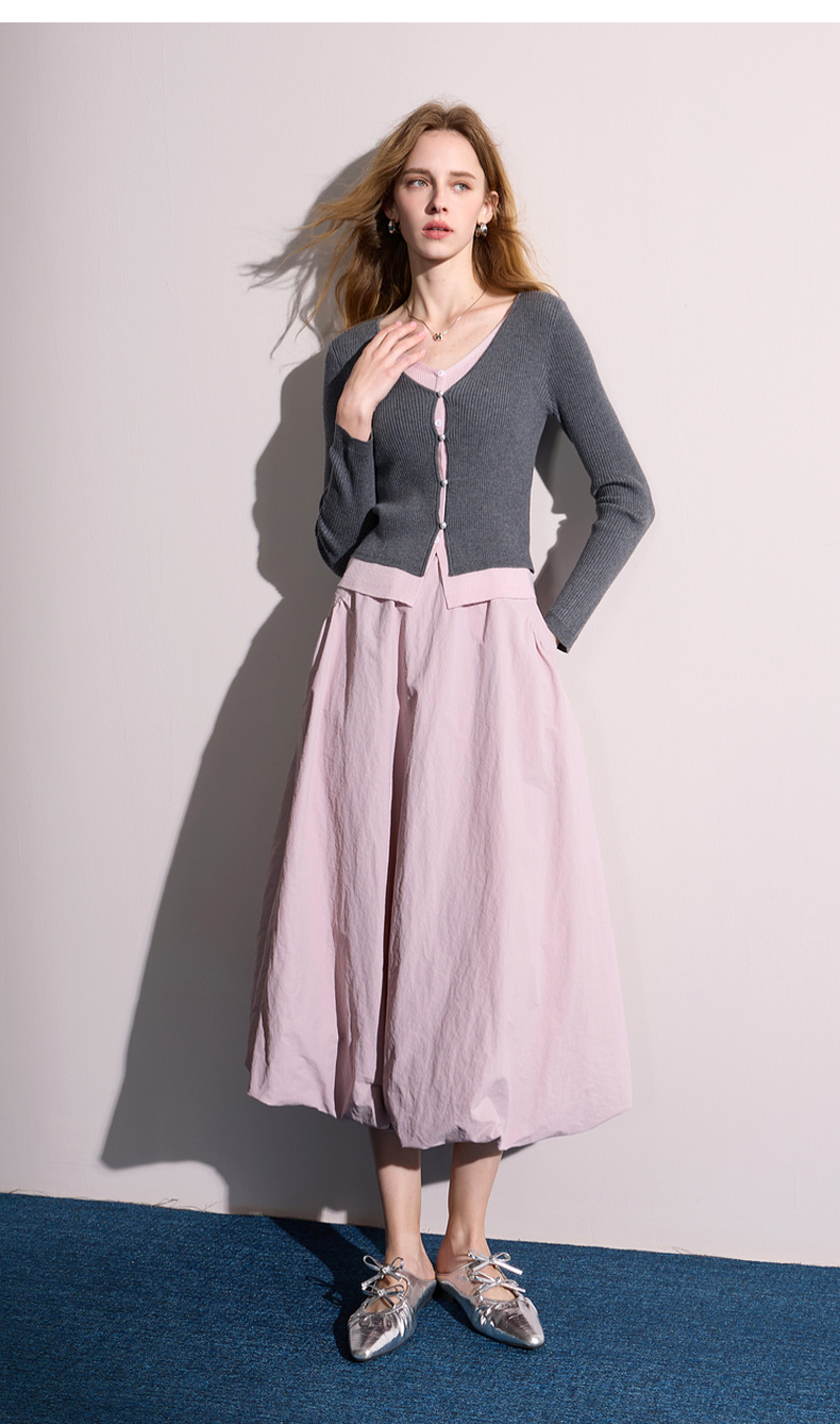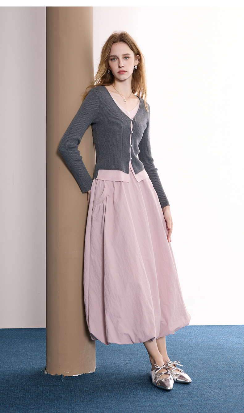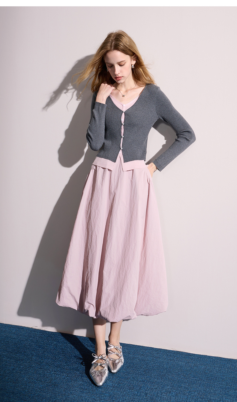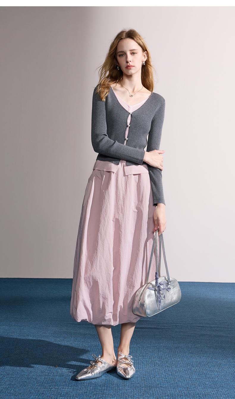【梨形理想裙】三彩2025秋季新款半身裙收腰花苞裙宽松A字裙M