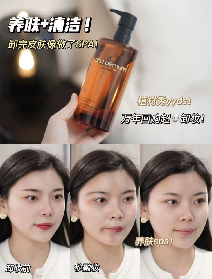 不愧是植村秀研究了55年的黄金比例的油分子,能直达毛孔深处,溶解彩妆、黑头!