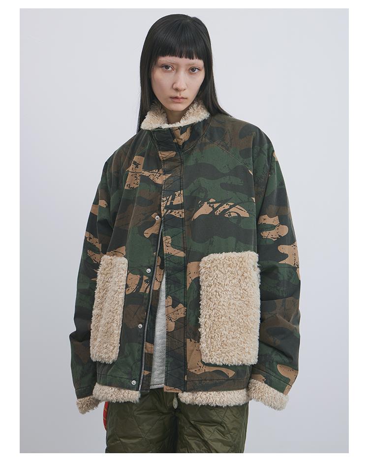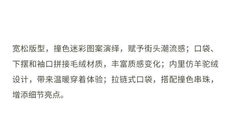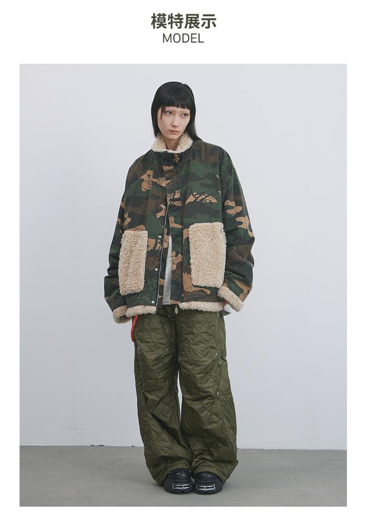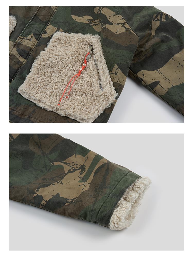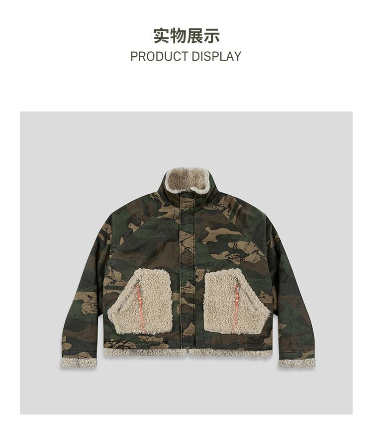 GOODBAI 916 迷彩拼接仿羊驼绒串珠拉链棉服外套