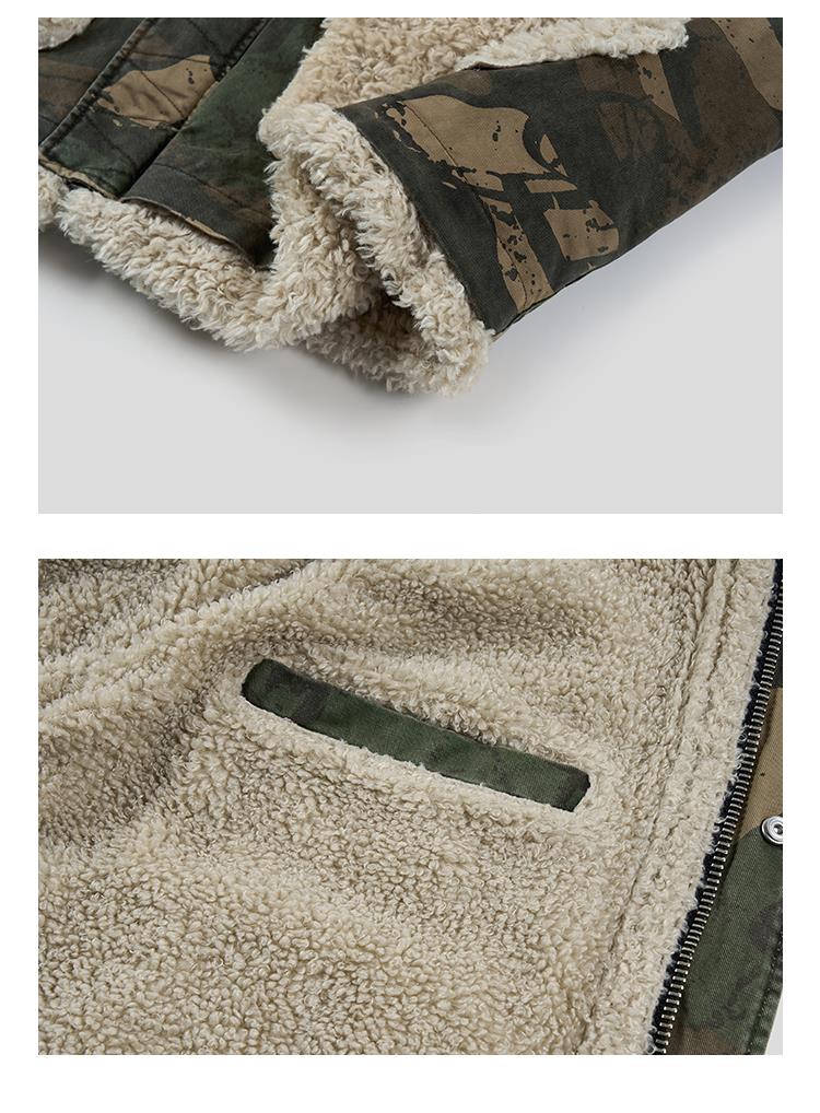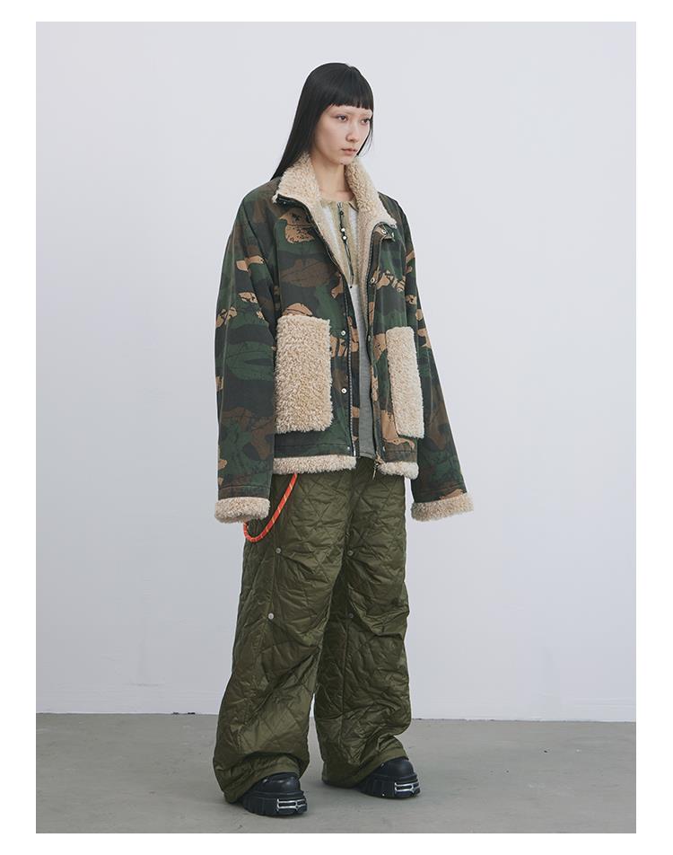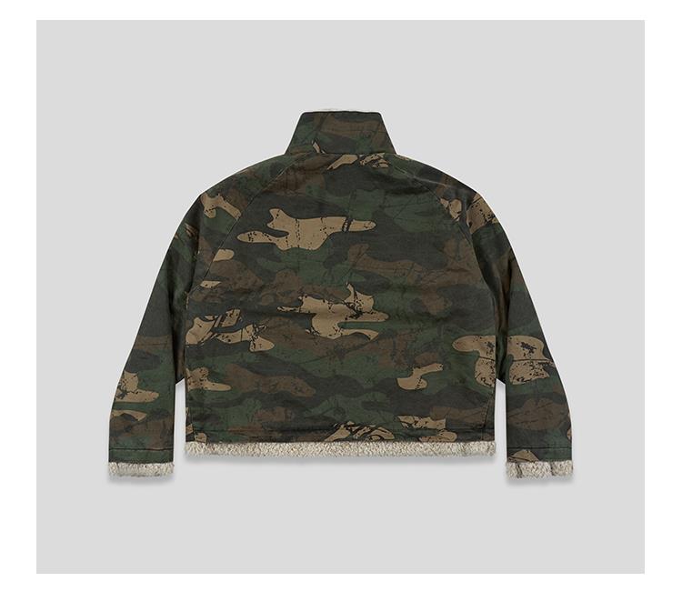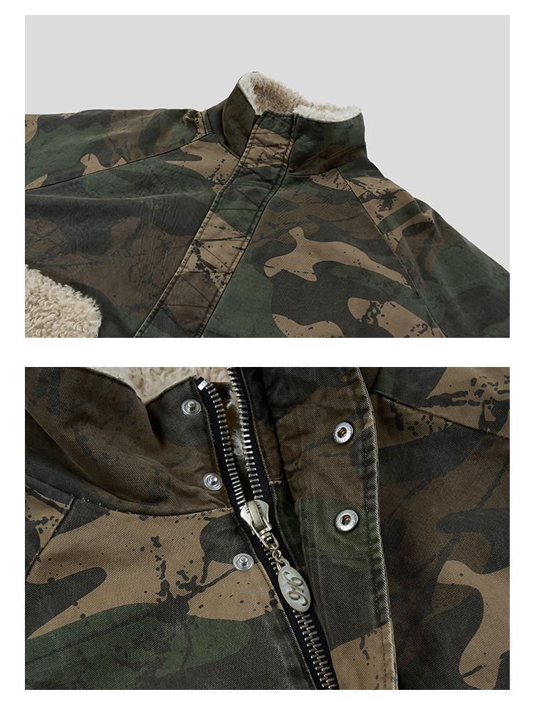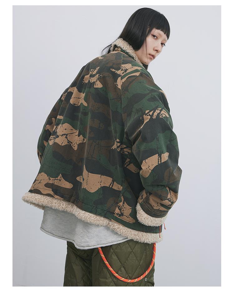 GOODBAI 916 迷彩拼接仿羊驼绒串珠拉链棉服外套