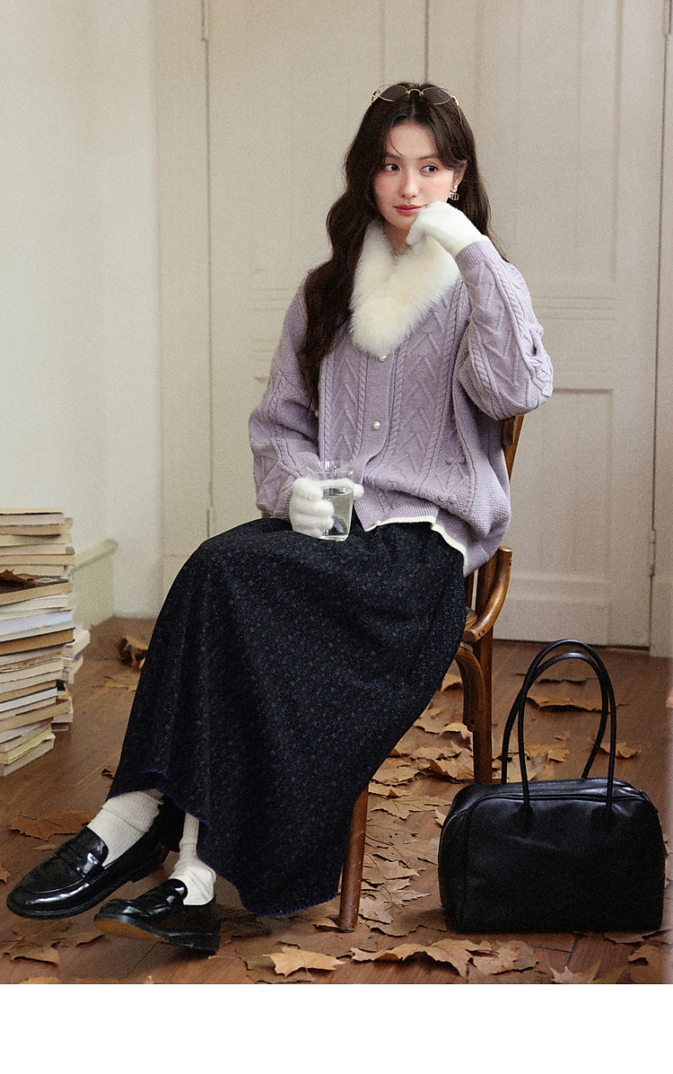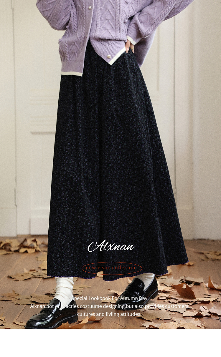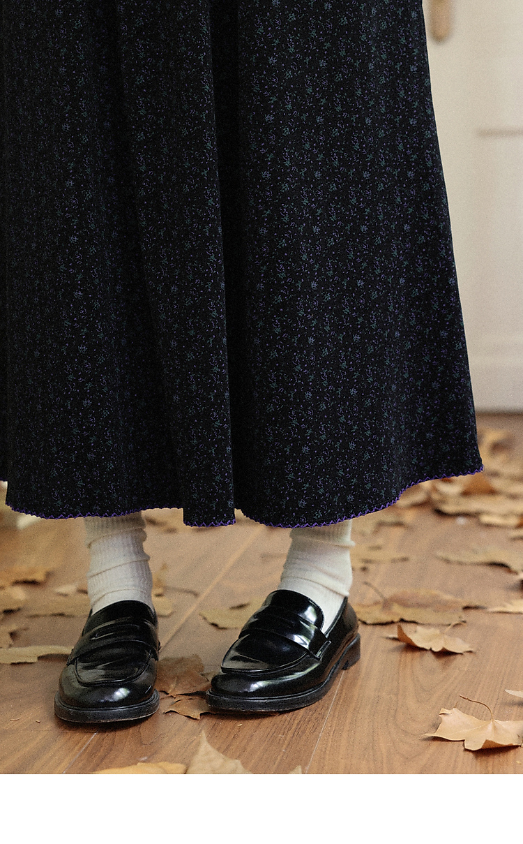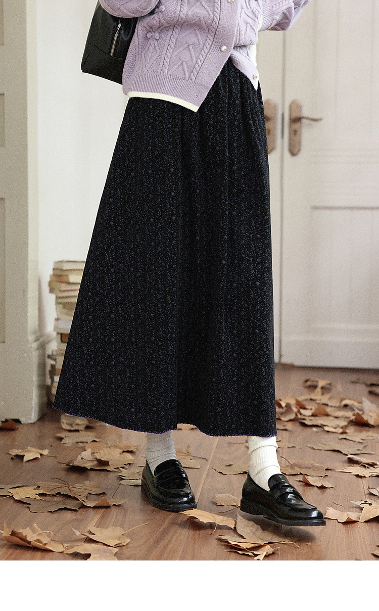 鹿向南「巴黎拱廊」黑色波点碎花半身裙女秋季显瘦高腰A字长裙