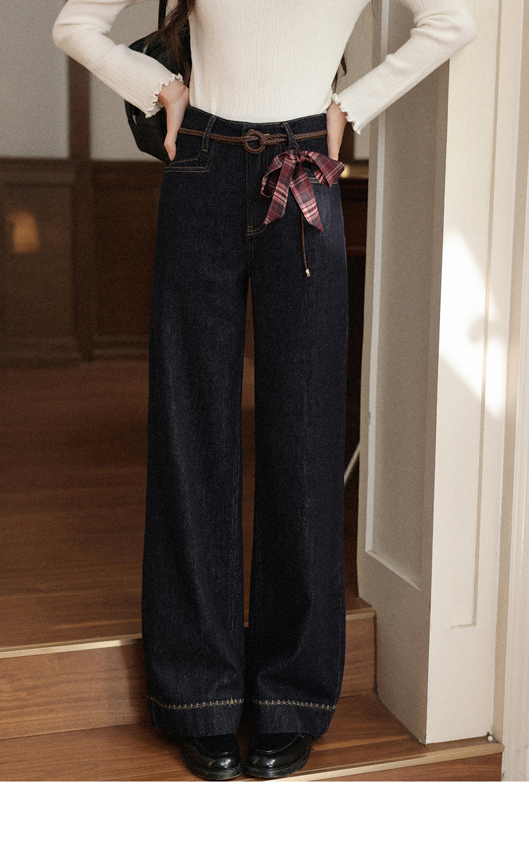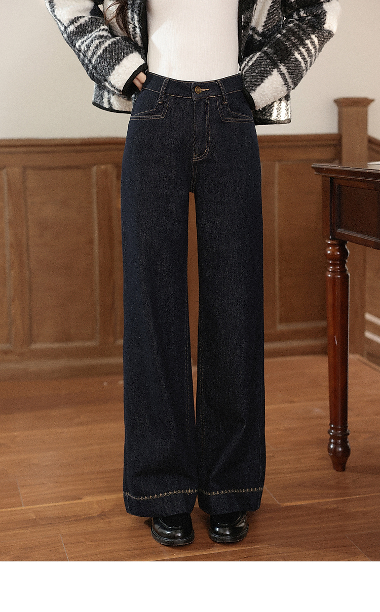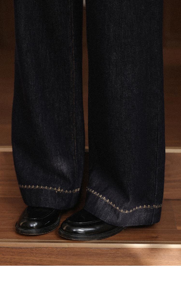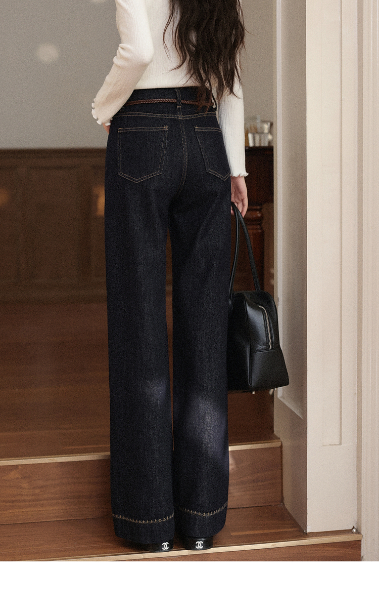 鹿向南「复古蓝调」复古深蓝色牛仔裤女秋季2025新款显瘦阔腿长裤