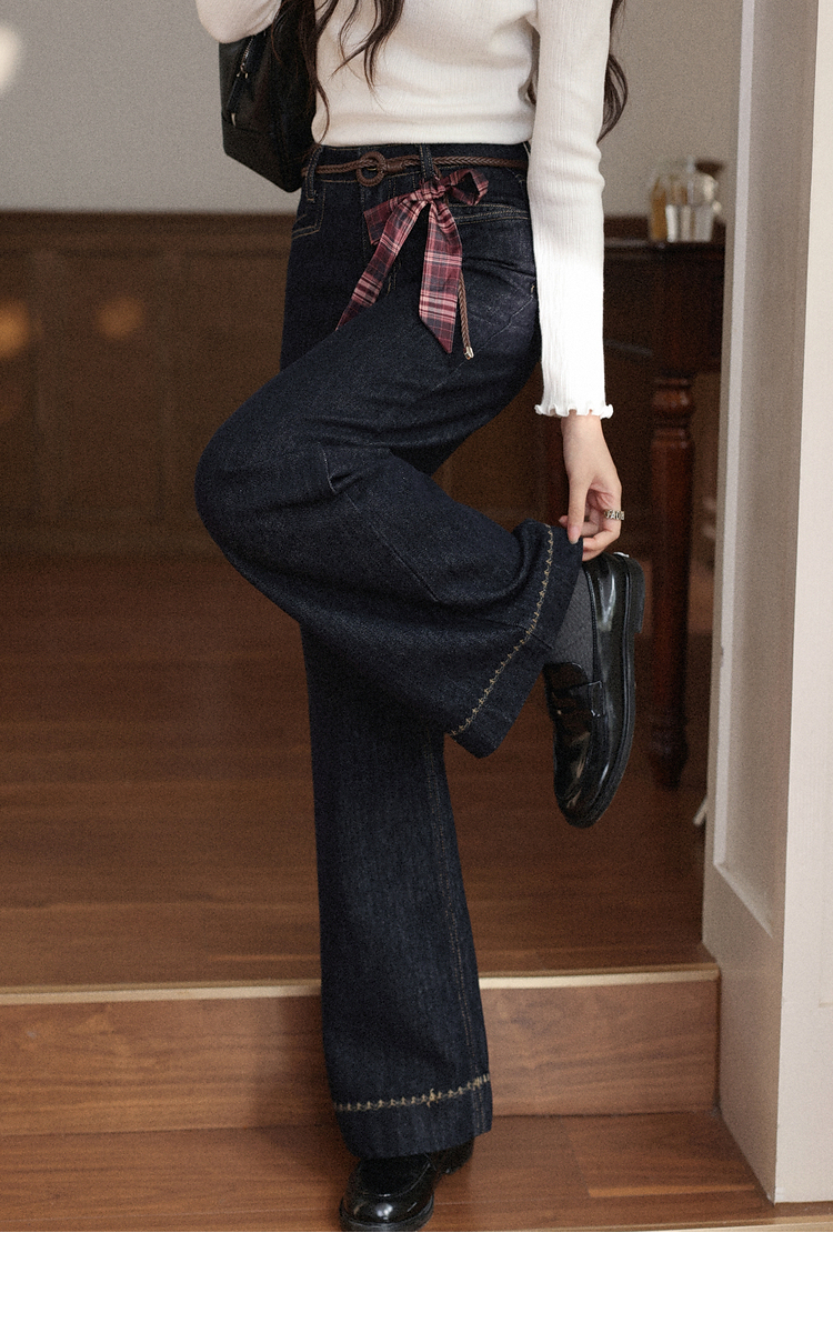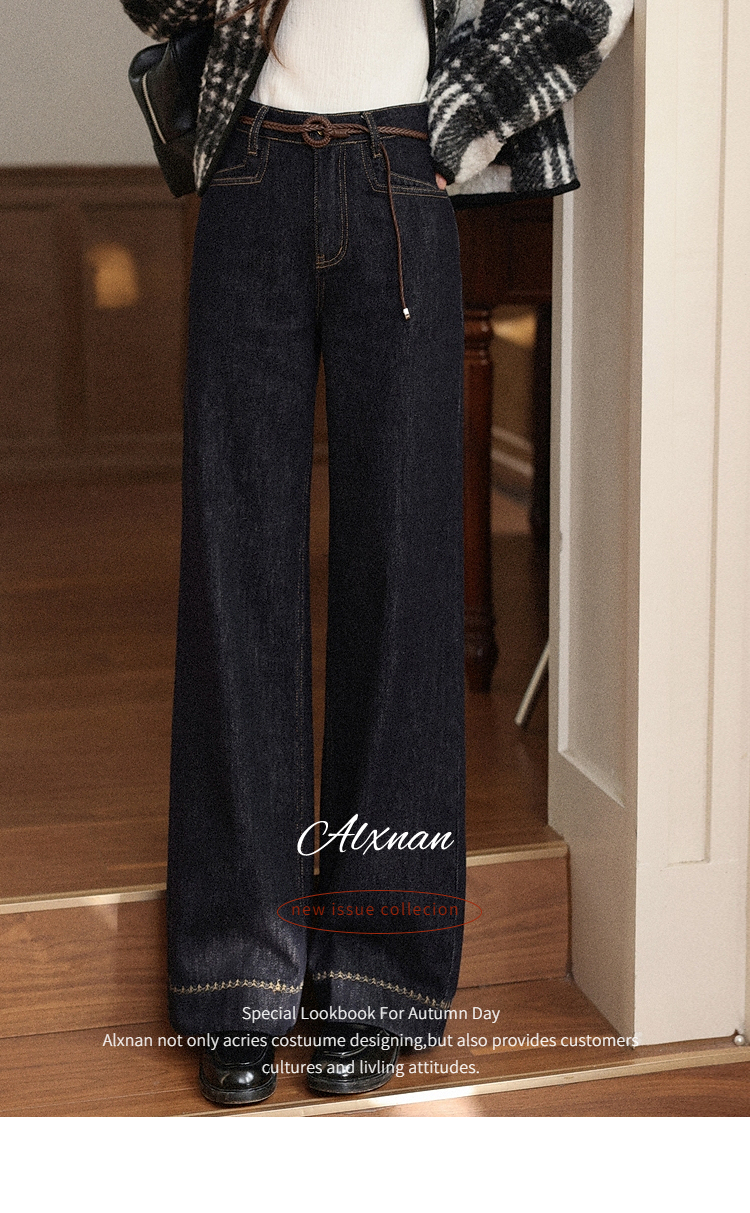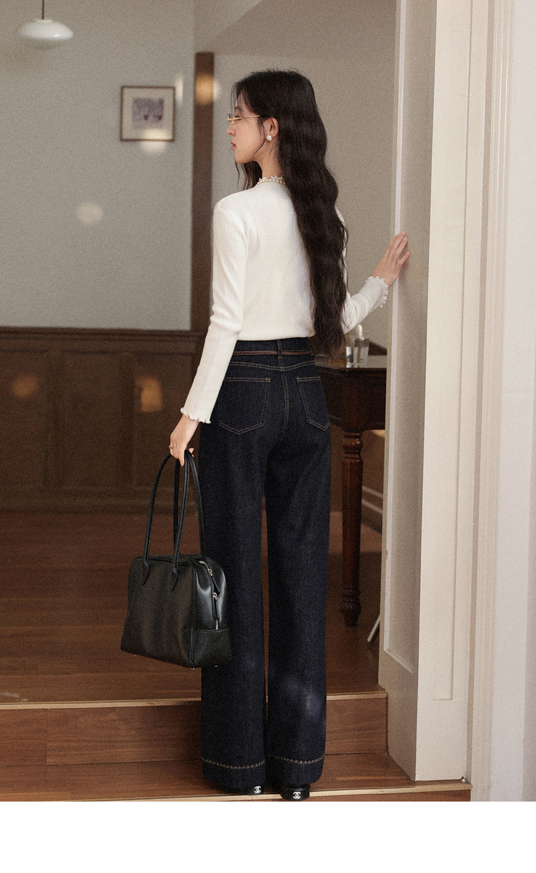 鹿向南「复古蓝调」复古深蓝色牛仔裤女秋季2025新款显瘦阔腿长裤