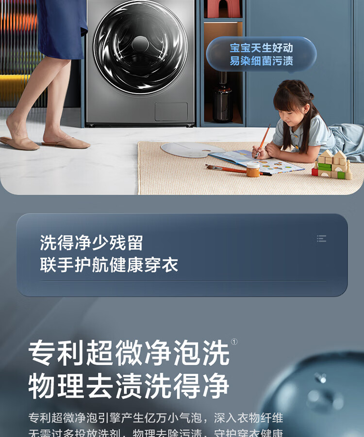小天鹅(LittleSwan)滚筒洗衣机全自动 超微净泡水魔方 洗烘一体 物理去渍 超薄10公斤 TD100RFTEC-T50C