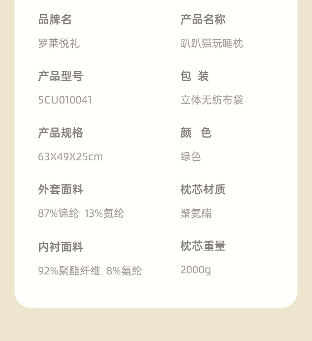 罗莱悦礼 趴趴猫玩睡枕